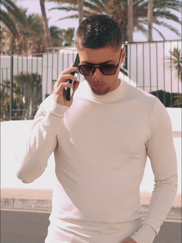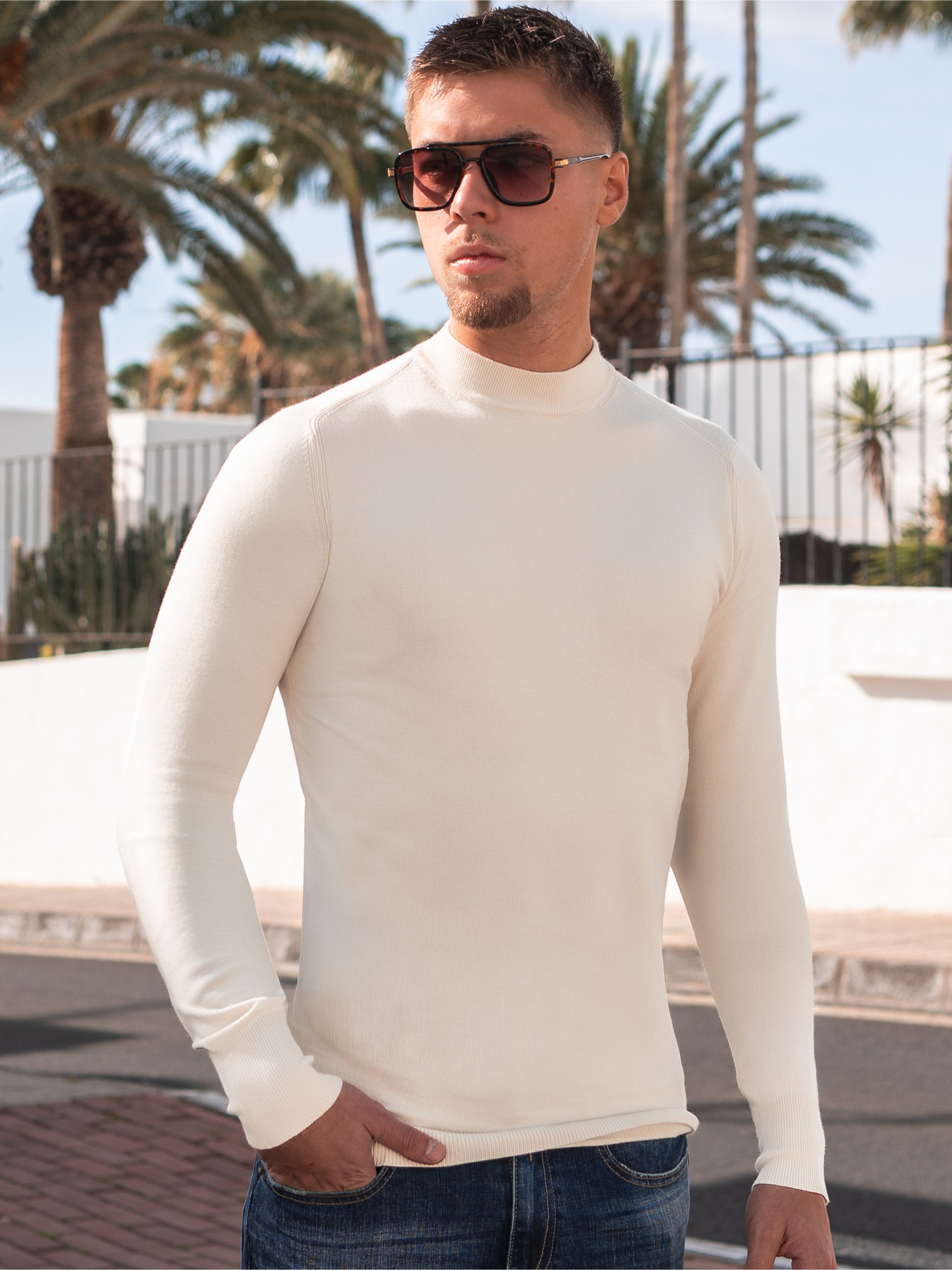 The Hollum Sugar is the ultimate essential for a clean, high-end look. This pullover features a minimalist design with a stylish mock-neck collar, offering a sophisticated alternative to the classic crewneck. The 'Sugar' color is a fresh, light beige tone that brings a bright and premium energy to your outfit.