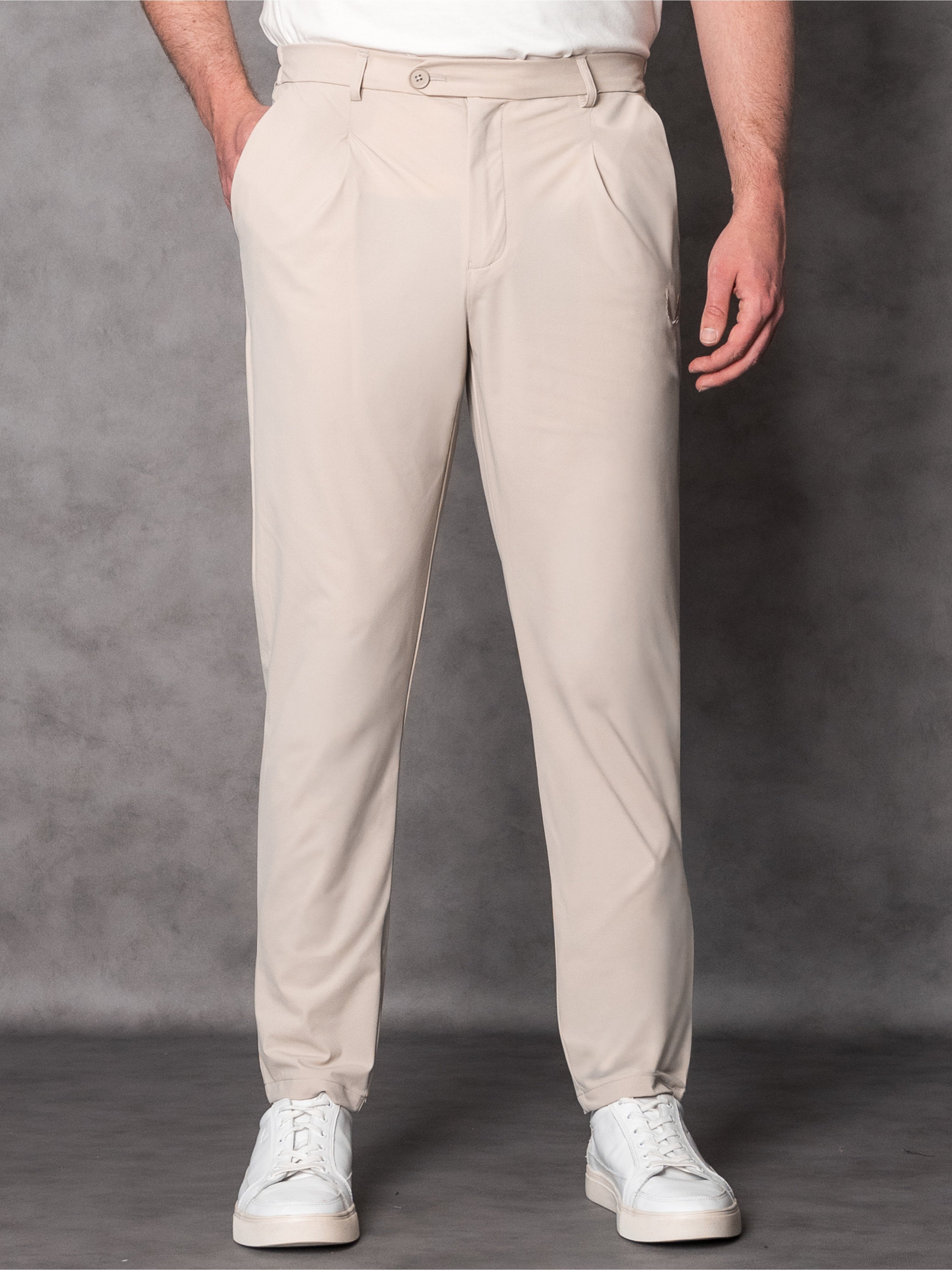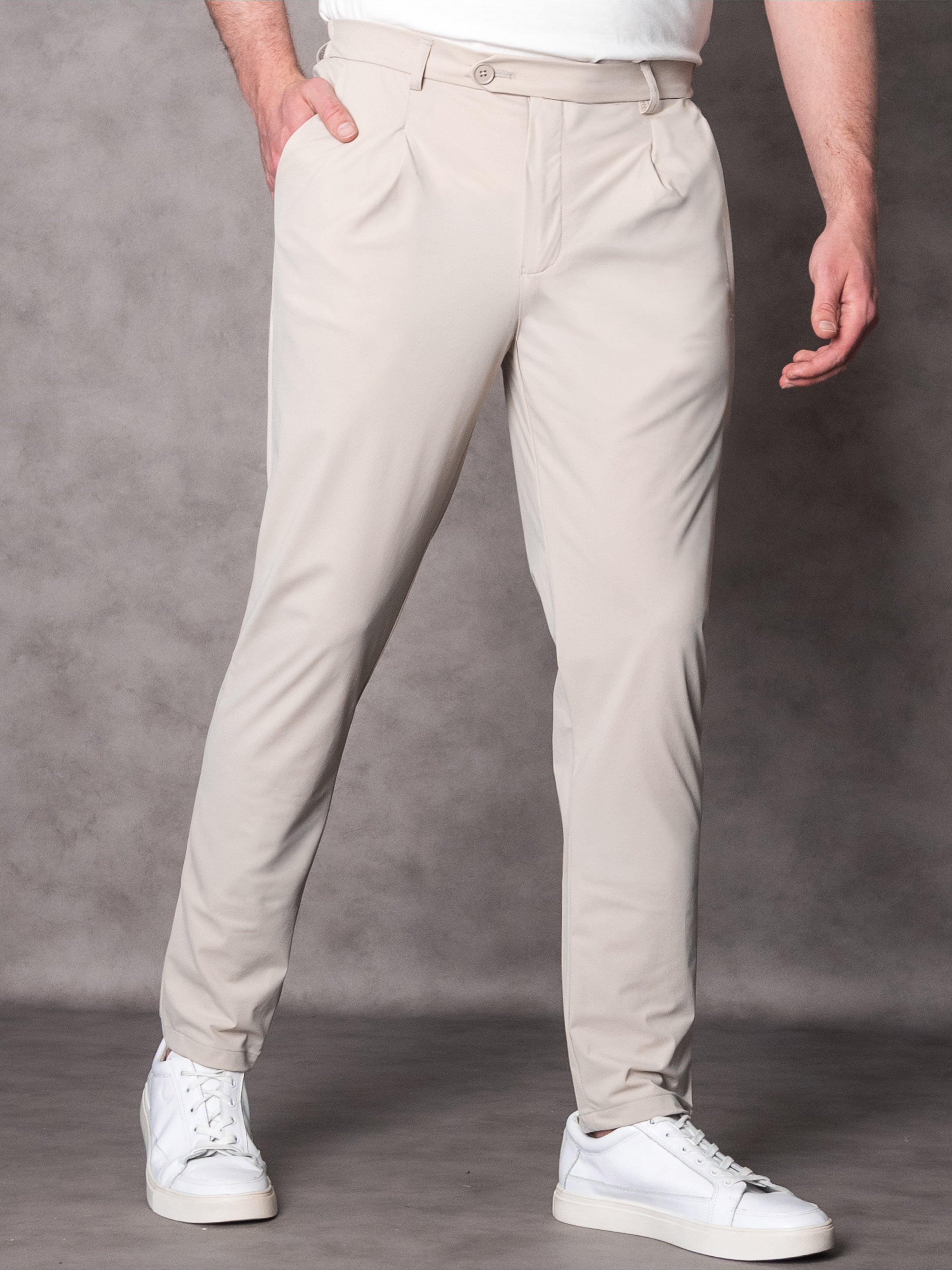 Die CISTERNA-K Sand Hose ist die perfekte Verbindung aus zeitloser Eleganz und innovativem Komfort. Gefertigt aus erstklassigem Stretch-Tech-Gewebe, bietet diese Hose mit Bundfalte maximale Bewegungsfreiheit bei gleichzeitig scharfer Silhouette.
