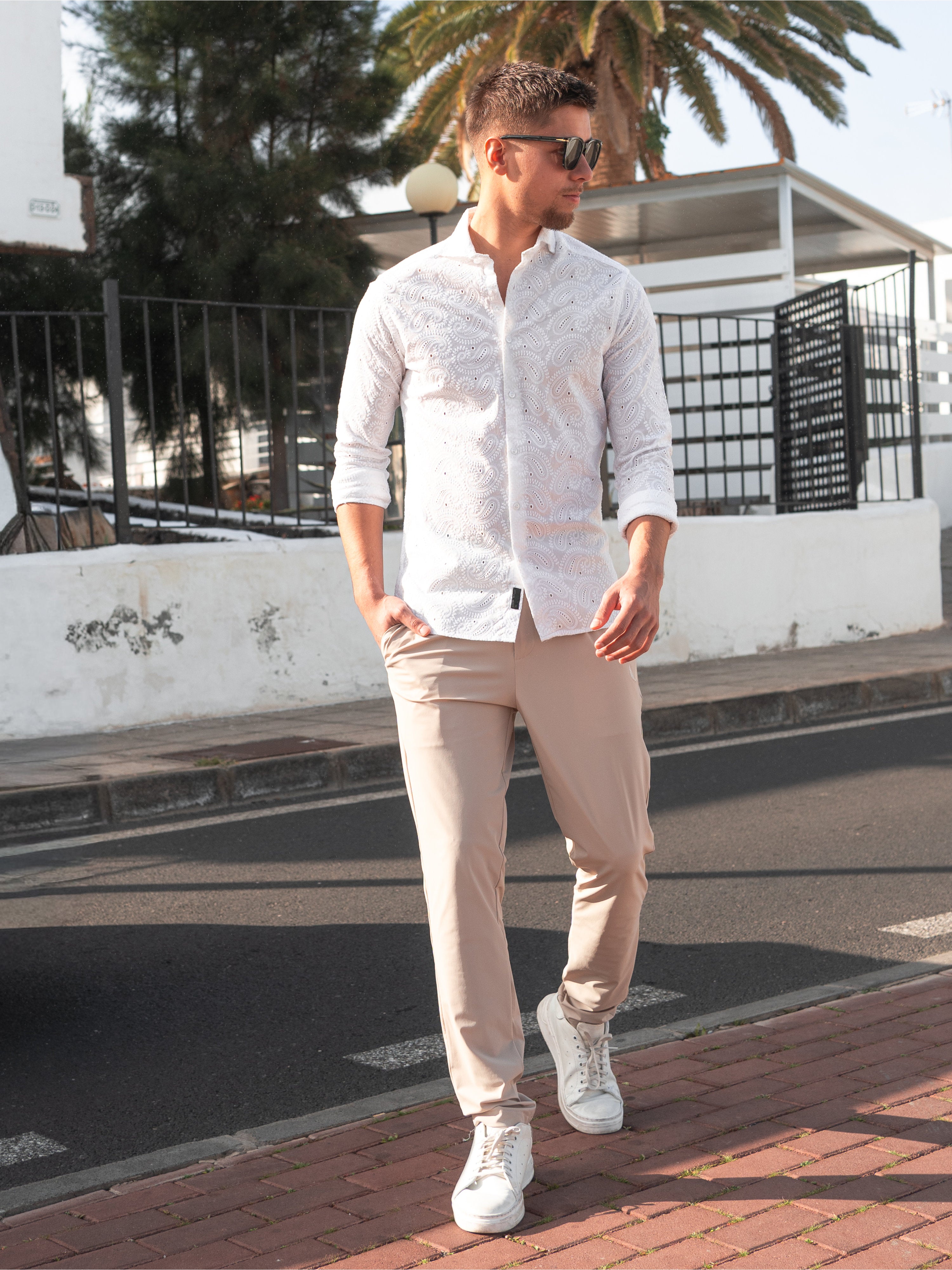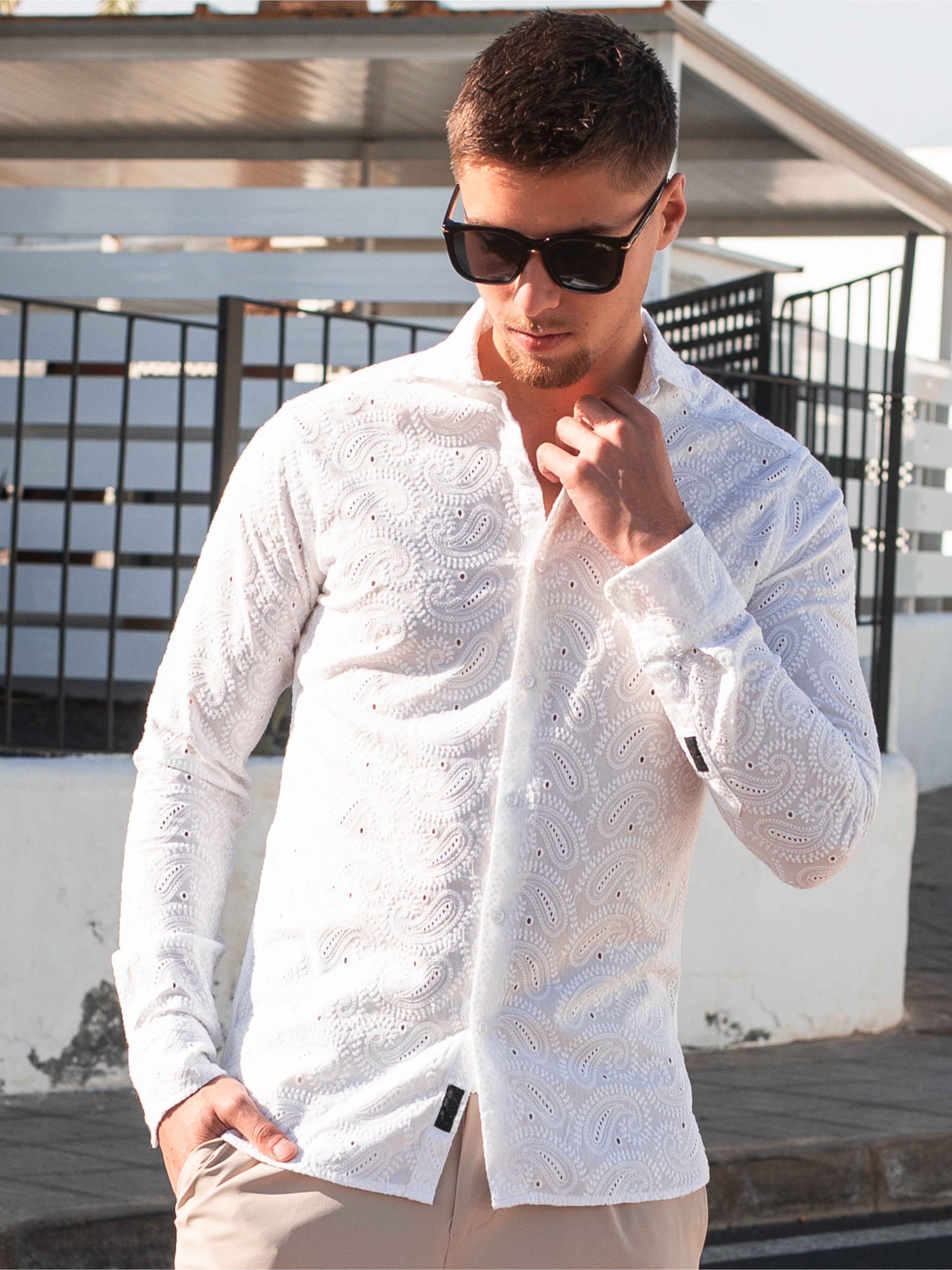 Style Tip: Wear the Keith-Paisley White with sand-colored chinos or linen trousers for the ultimate "Resort Wear" look. Finish with loafers for a refined touch.