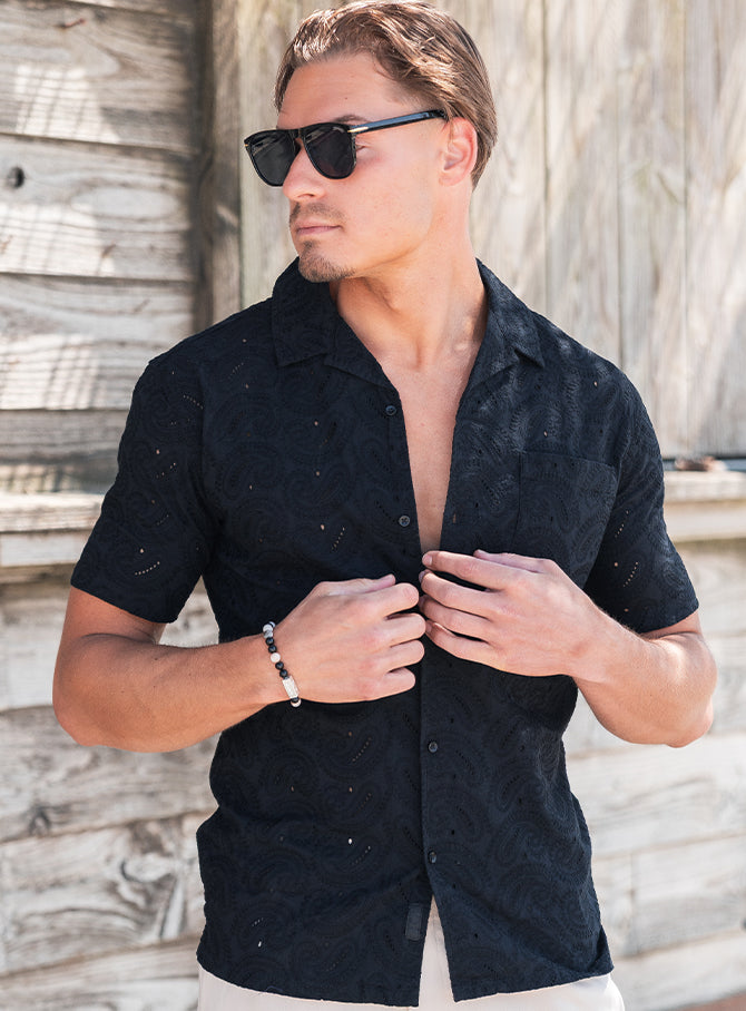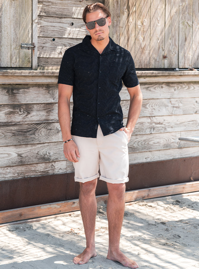 The Beau-Paisley shirt is that one summer piece that hits the sweet spot between relaxed and refined. Made from a lightweight cotton-elastane blend, it feels soft, breathable and drapes naturally on the body. The woven paisley texture adds just the right amount of detail. Subtle from afar, impressive up close. The regular fit keeps it easygoing, while the Cuban collar leans into that effortless, sunny-day vibe.