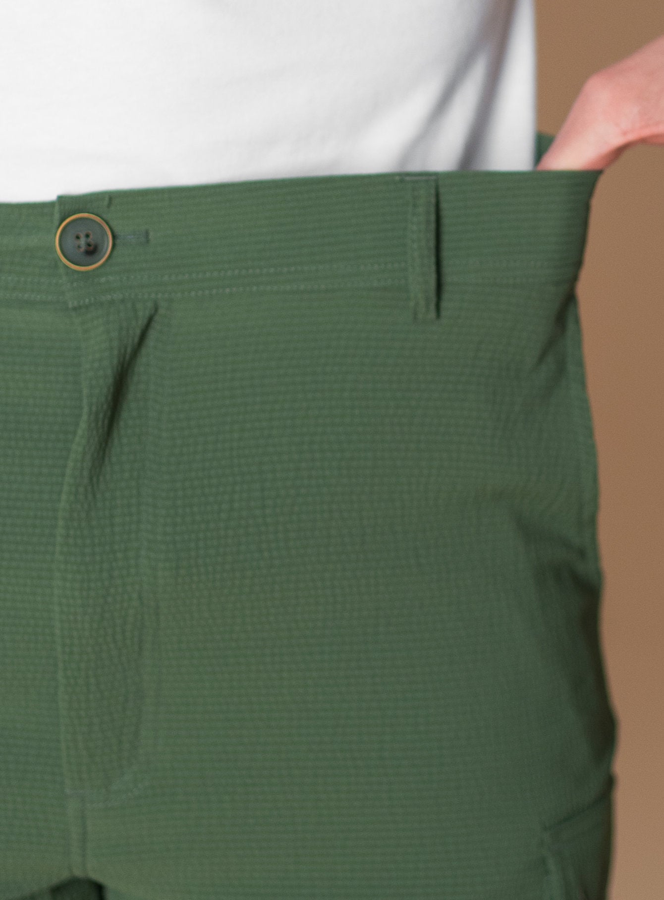 The Bomba shorts are made for warm days where comfort and style go hand in hand. The fabric is smooth, lightly stretchy, and feels comfortable with every move. A subtle wave-like texture gives them a breezy feel and a distinct look. The regular fit wears relaxed on the thigh, with an elasticated back waistband for extra flexibility. Thanks to the cargo pockets, style and function come together effortlessly. Clean, comfortable and just right for all your summer plans.