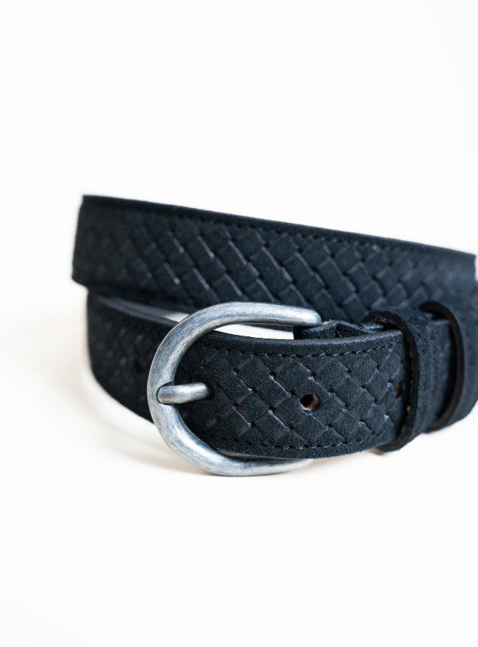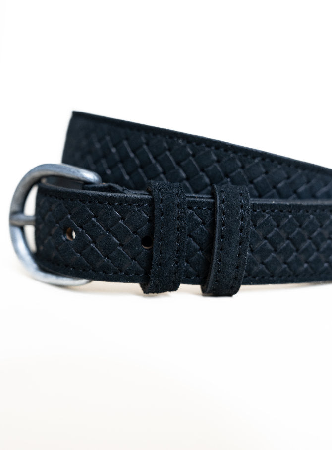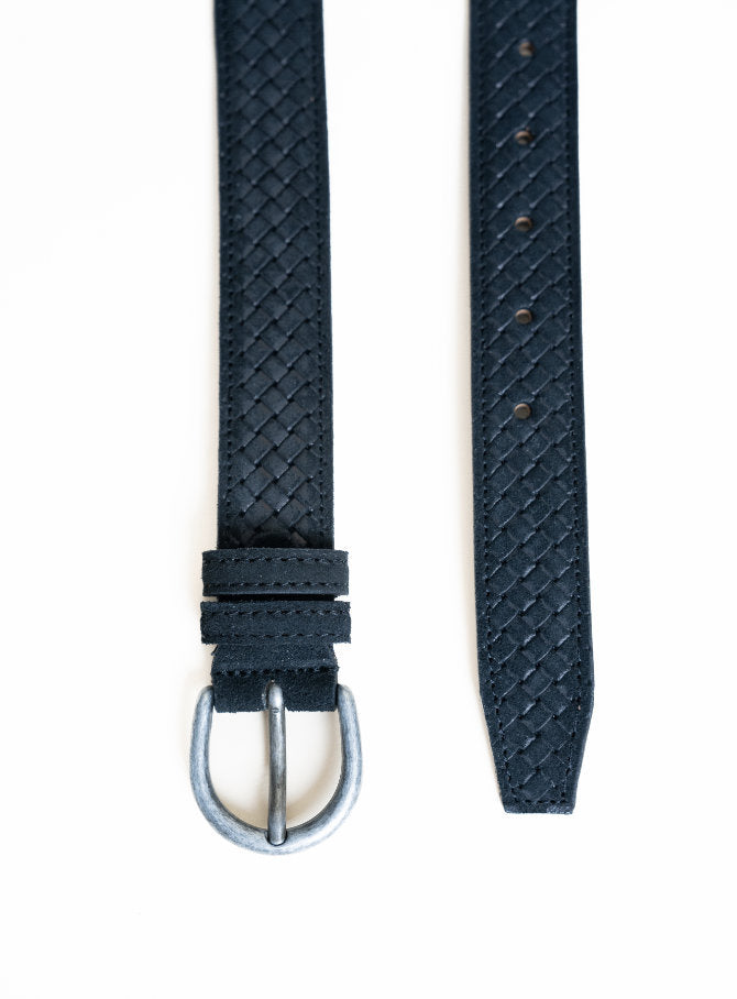 El cinturón de ante trenzado Cetara-Treccia combina lujo y funcionalidad. Su exterior de ante suave y flexible y su interior de cuero ofrecen comodidad y durabilidad. Con una hebilla de acero galvanizado y un diseño moderno para hombre, este cinturón de ante es ideal y un accesorio esencial tanto para atuendos casuales como formales.