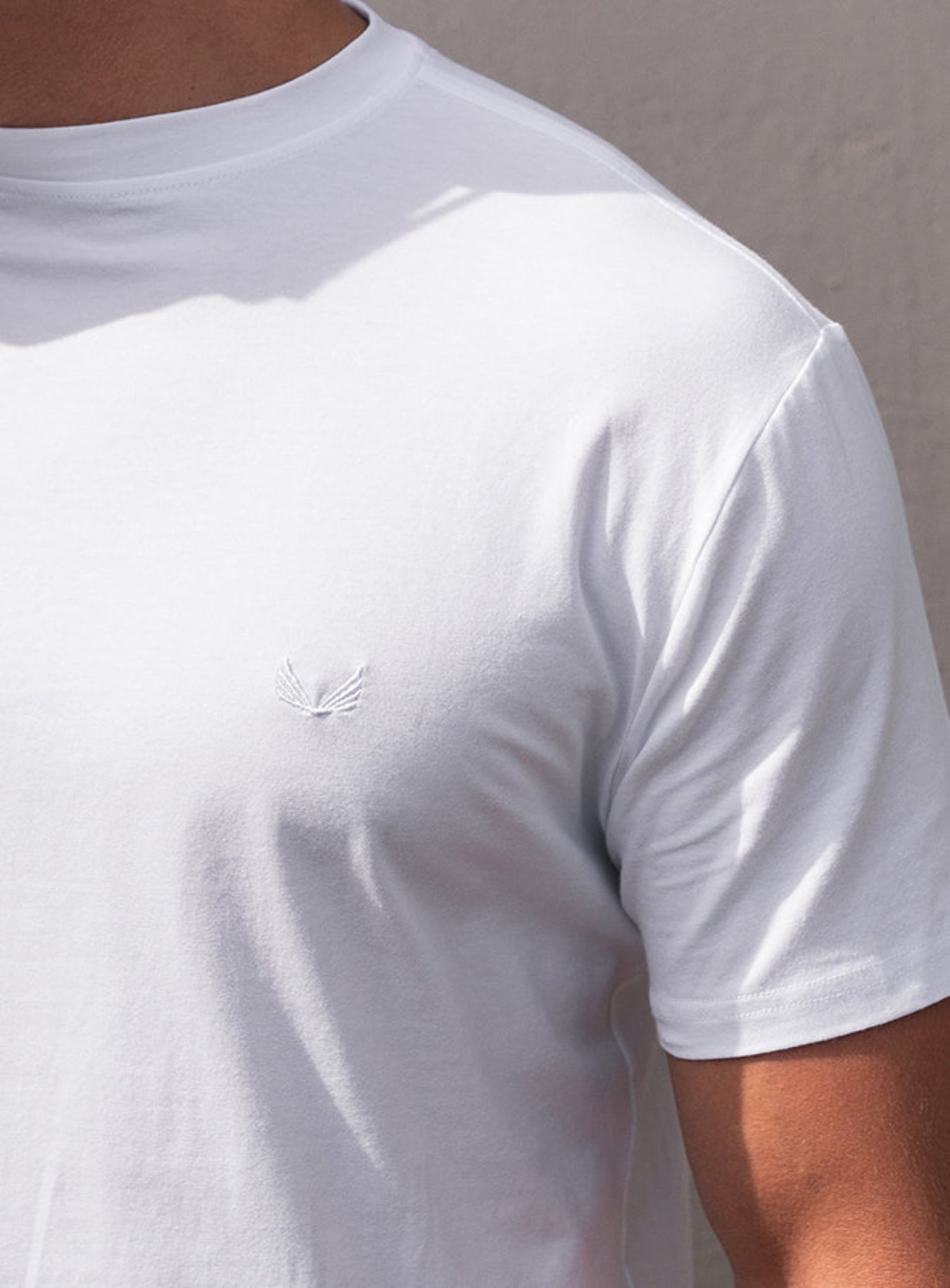 The Wood T-shirt is built for everyday ease, with a bit more room where it counts. Made from a breathable cotton blend, this slim fit tee is designed to move with you, not against you. The sleeves are cut just slightly looser for a more natural feel through the arms, while the body keeps its clean, tailored look. It’s soft, lightweight and quietly confident—exactly what a staple piece should be. Wear it solo or layer it up, this one always works.