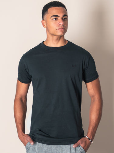 Built for daily wear but finished like a premium piece. This tee is made from 100 percent garment dyed cotton, giving it a soft feel and deep, rich tone. The slim fit and elastic trims at the neck and sleeves frame the upper body and bring subtle shape without restricting movement. It is clean, comfortable and versatile. A go to essential that works wherever the day takes you.