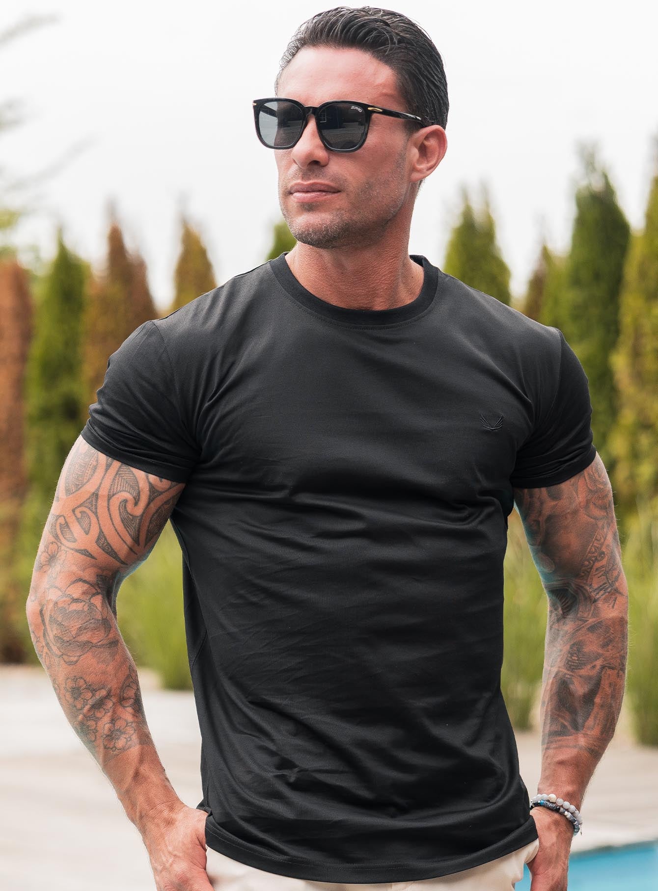The Stone-MC T-shirt is where sharp style meets everyday ease. Made from 100% mercerized cotton, it has that silky-smooth finish and subtle sheen that gives it a luxe edge. The slim fit hugs just right across the chest and shoulders without feeling tight, and the fabric holds its shape no matter how often you wear it. Deep color tones and wrinkle resistance make this an easy go-to when you want to look clean, confident and put together.