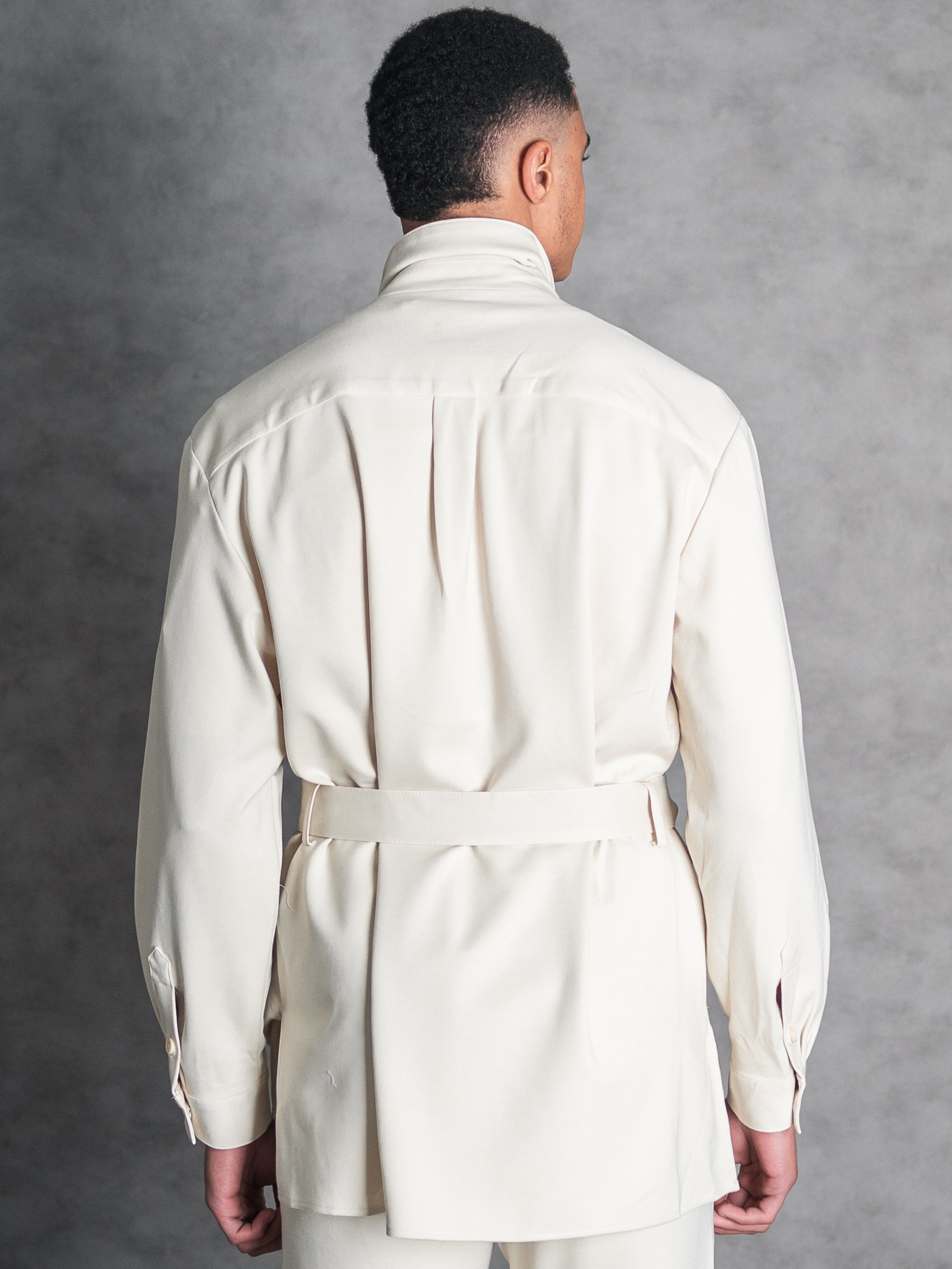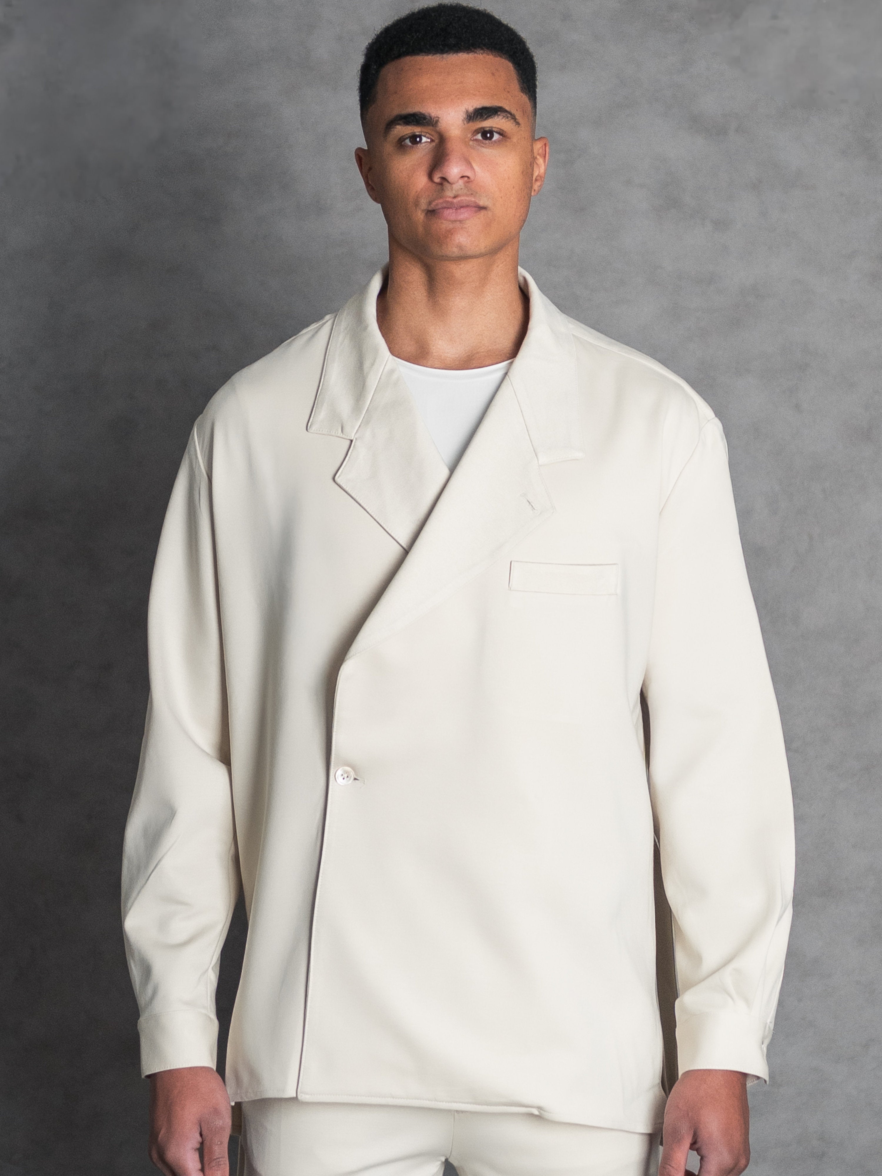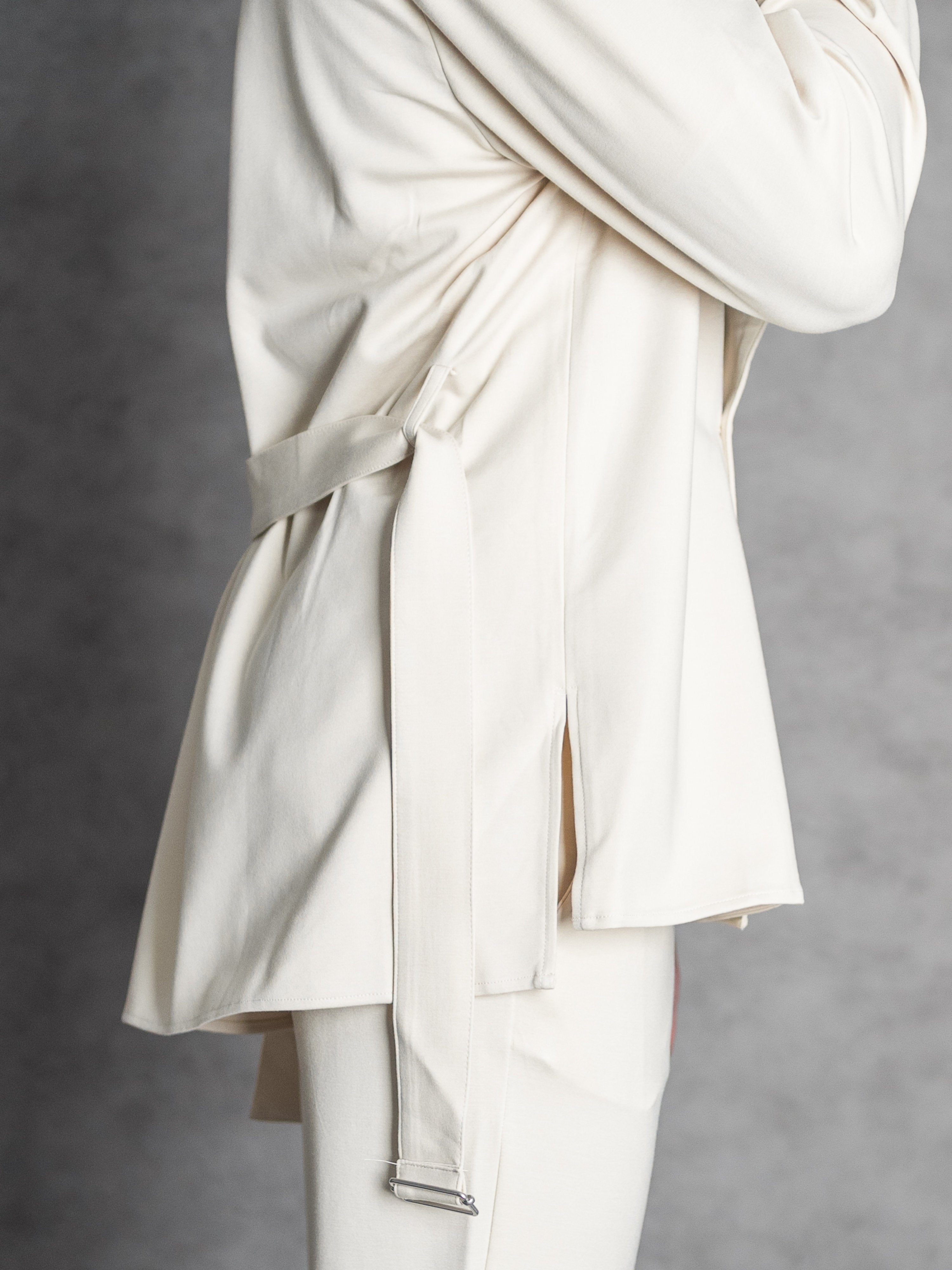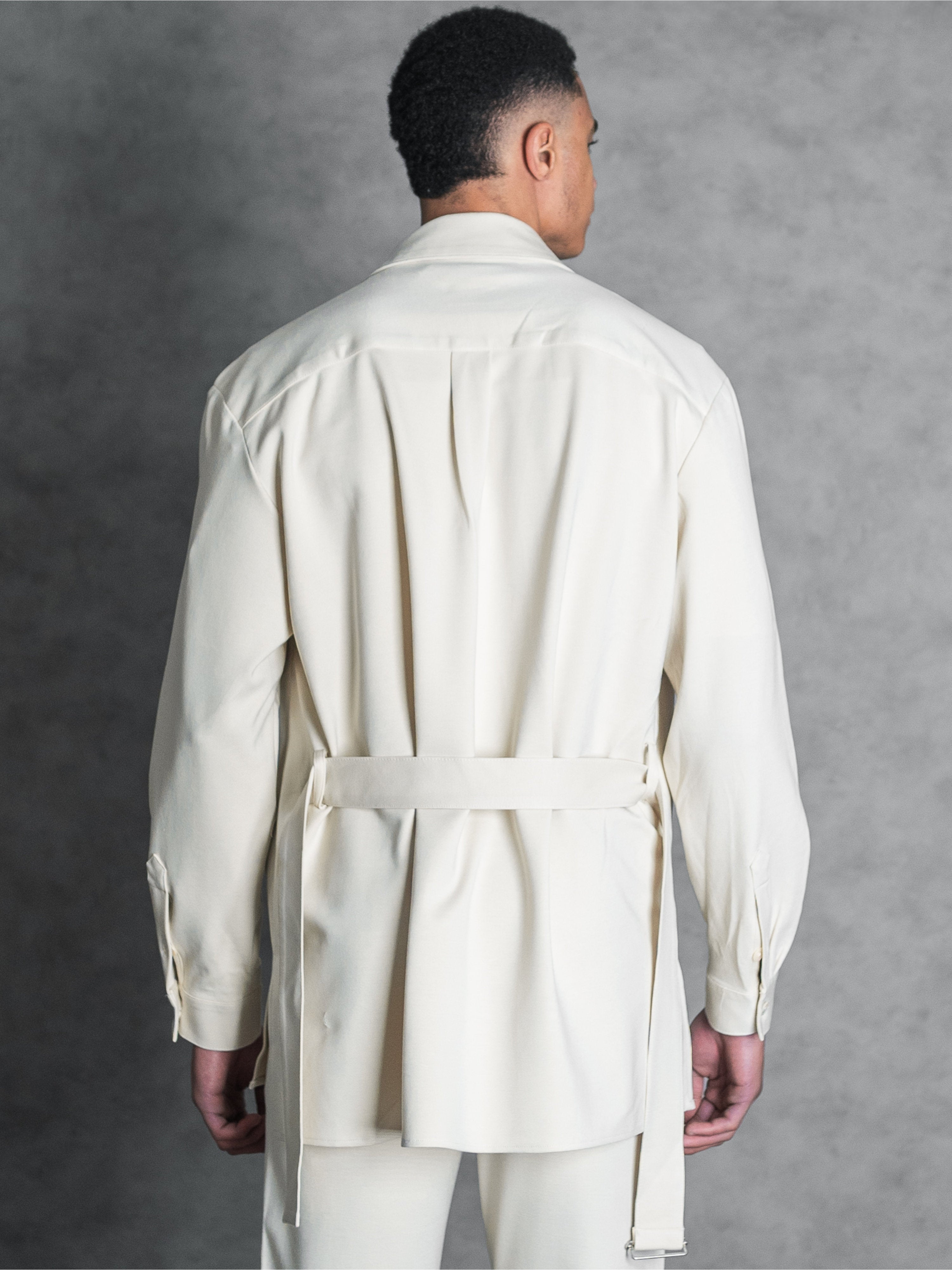 • Soft regular fit for a relaxed refined shape • Lightweight breathable fabric for all day comfort • Comfortable stretch that moves easily with you • Cross closure with a clean single button detail • Matching fabric belt for adjustable styling • Notch lapels for a modern tailored finish