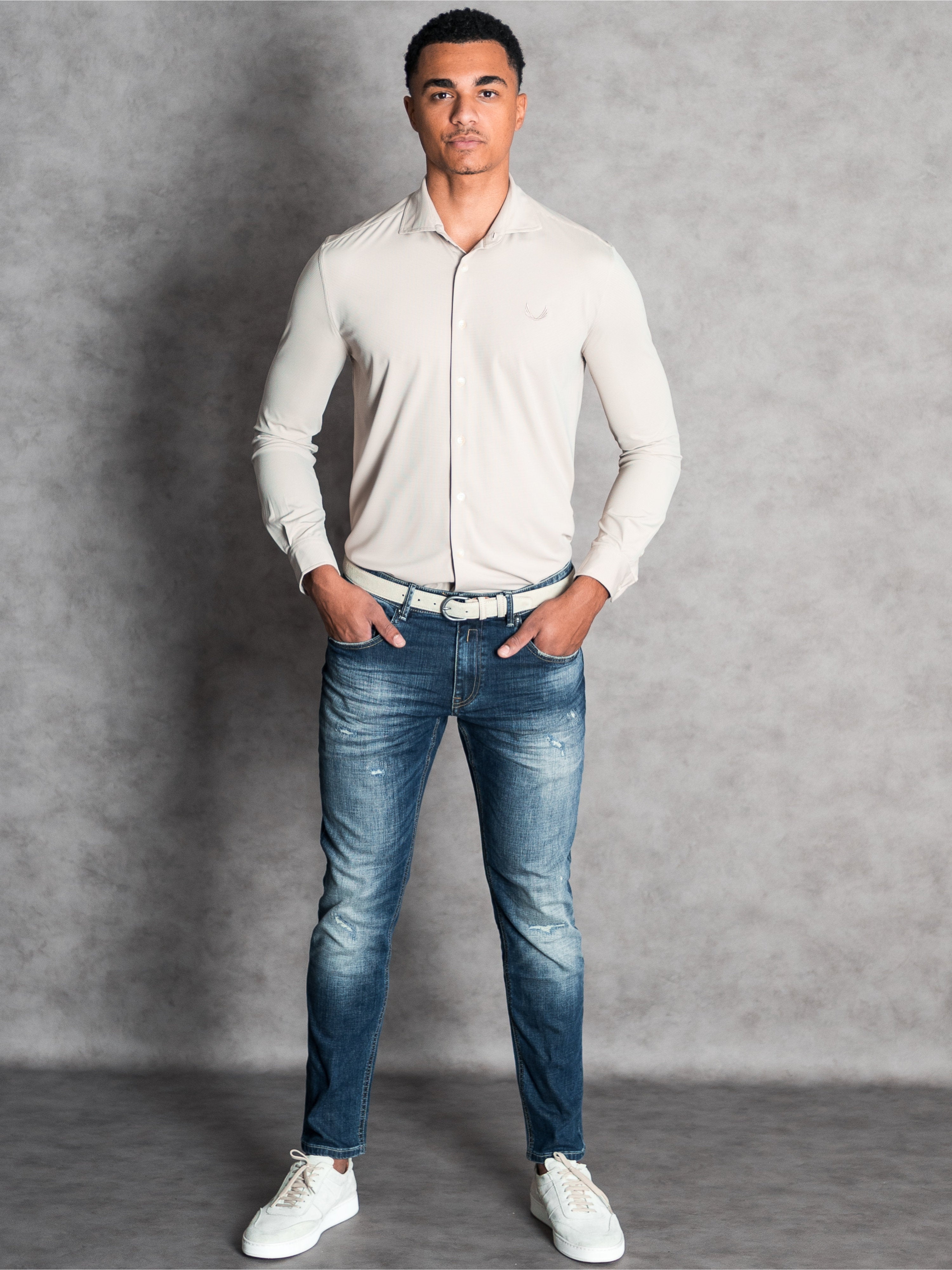 De Bros LC beweegt met je mee. De regular fit zit goed en geeft een cleane, moderne look. De stretchstof voelt glad, licht en comfortabel, precies wat je wil op drukke dagen.