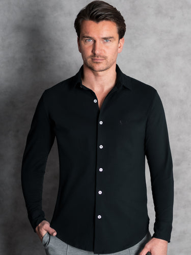 • Slim fit die het lichaam volgt • Katoen lycra jersey met zachte touch • 4-way stretch voor maximaal comfort • Licht en ademend voor dagelijks gebruik • Voelt als een T-shirt, oogt als een overhemd • Perfecte balans tussen smart en casual