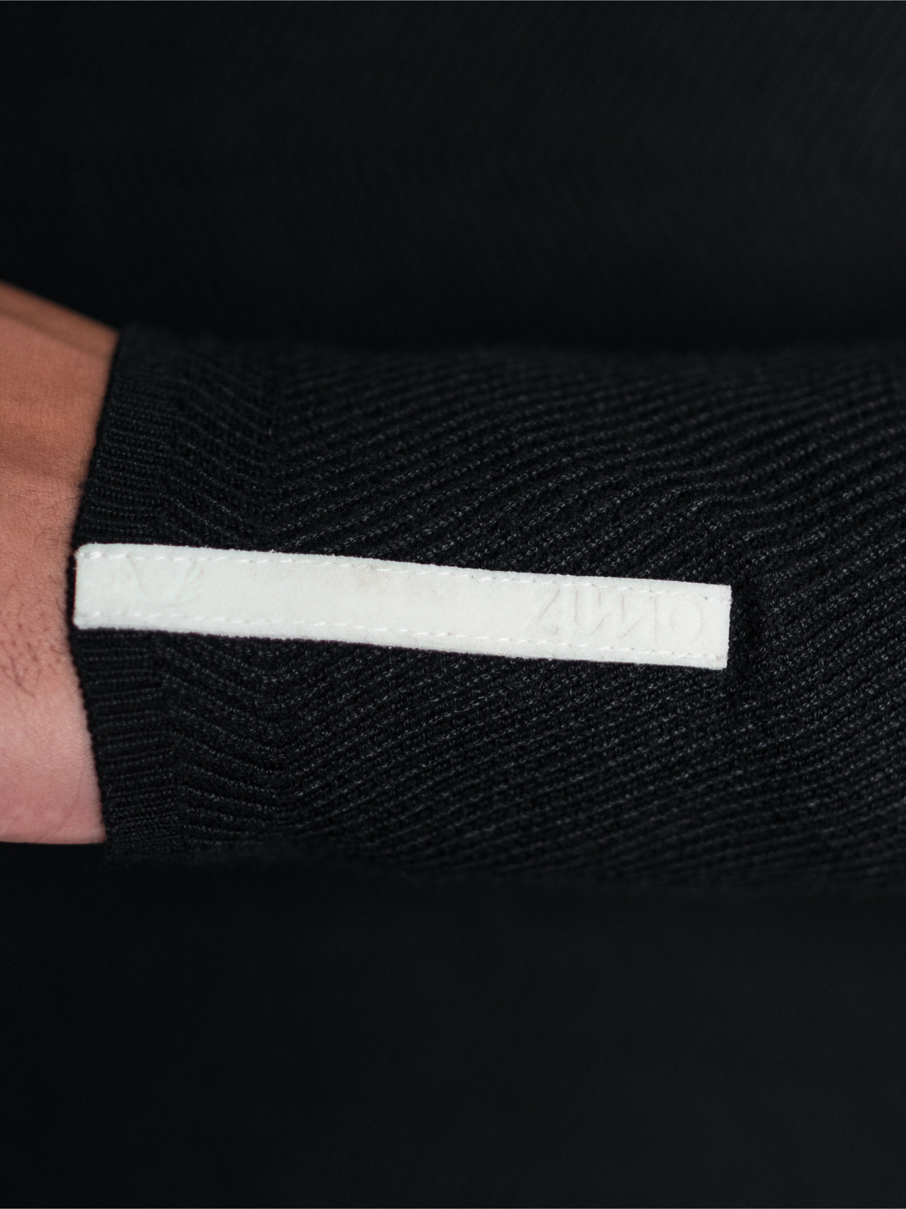 De Grums is anders dan de rest. De slim fit sluit goed aan, heeft net wat extra en laat je fysiek goed uitkomen. De viscose nylon knit voelt zacht en soepel met genoeg stretch voor comfort de hele dag door. De geweven visgraatstructuur geeft de trui diepte en een luxe uitstraling. Licht, ademend en makkelijk te dragen, de Grums werkt altijd onder een jas of gewoon los.