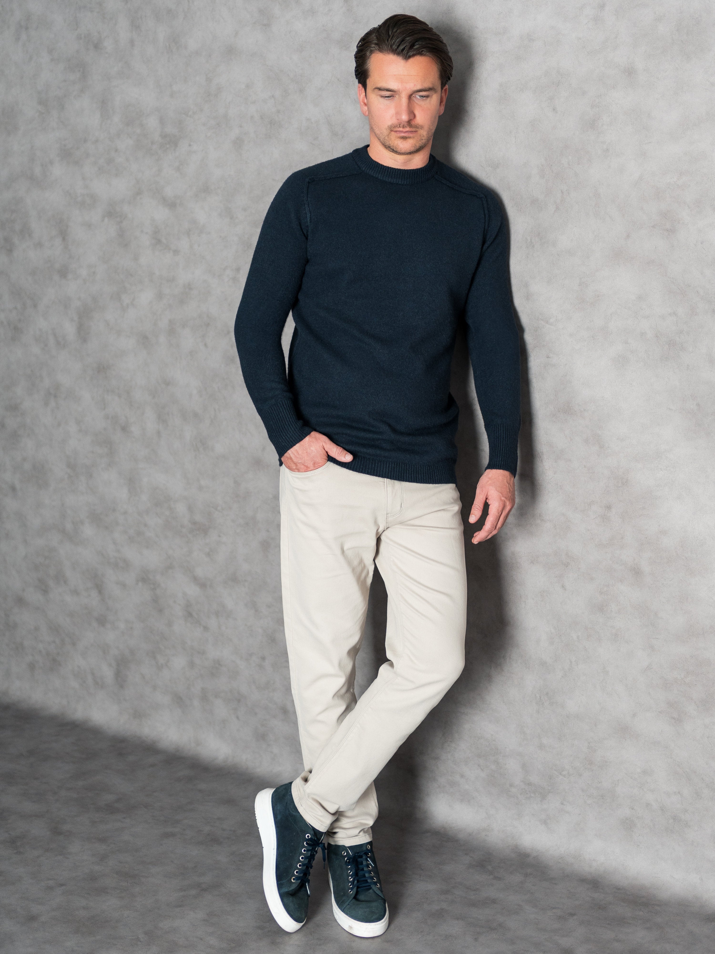 De Malthe R combineert warmte en stijl in een moderne look. De slim fit knit sluit goed aan en laat je fysiek spreken. De loft knit is zacht met een subtiele wolachtige touch, daardoor is het warm, licht en comfortabel. De mix van modal, acryl, polyester en nylon zorgt voor stretch, structuur en kreukvrij comfort. Ademend, makkelijk te dragen en ideaal om te layeren. De Malthe R past overal bij, altijd.