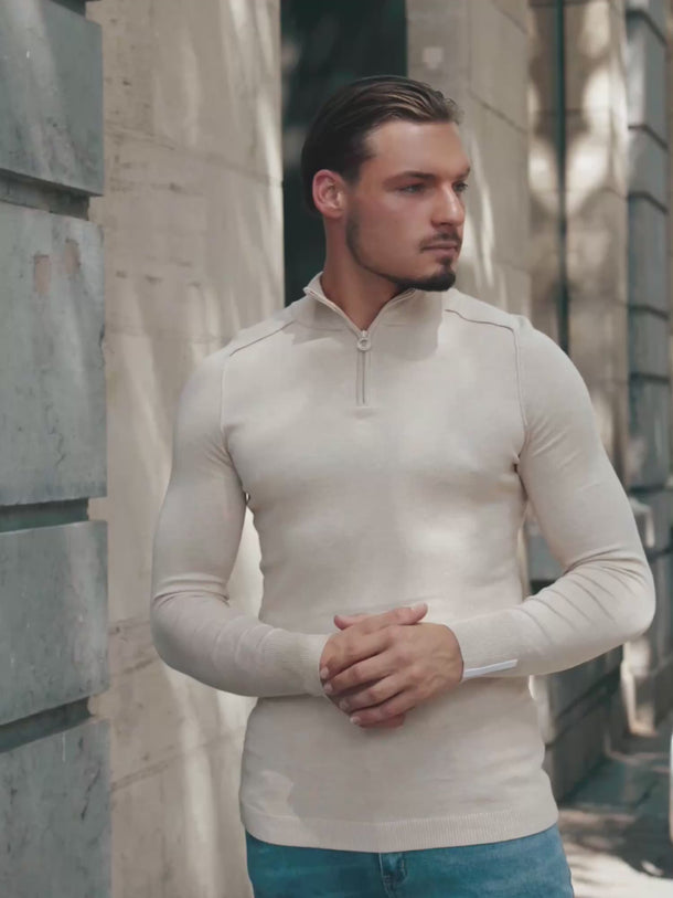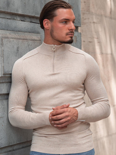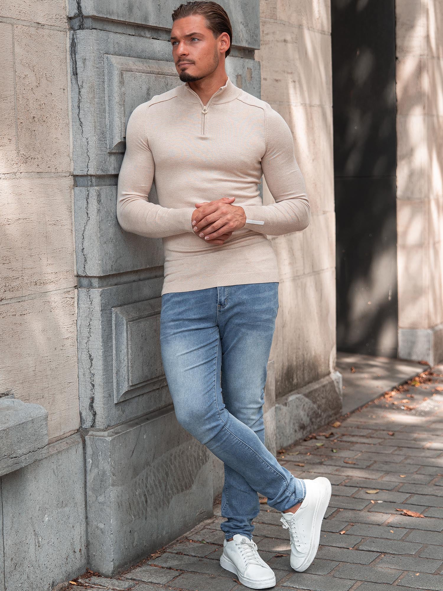 De 1/4 zip ritskraag kun je open dragen voor een ontspannen look of dicht voor een nette stijl. De stof stretcht mee, blijft comfortabel en behoudt zijn vorm.