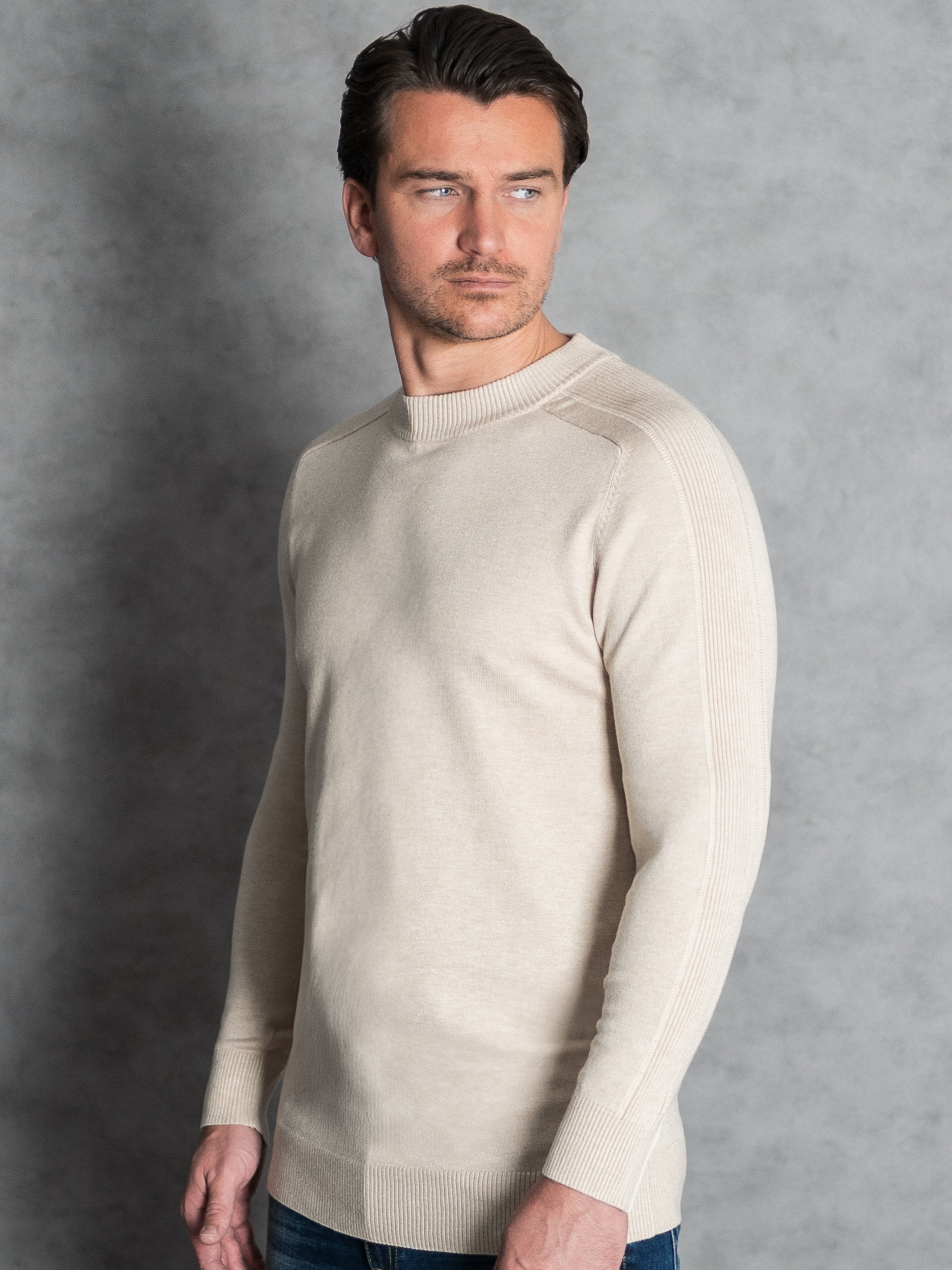 De ribdetails op de schouders en mouwen geven wat extra vorm en maken de trui net wat specialer. De stof stretcht lekker mee en houdt je warm als het frisser wordt.