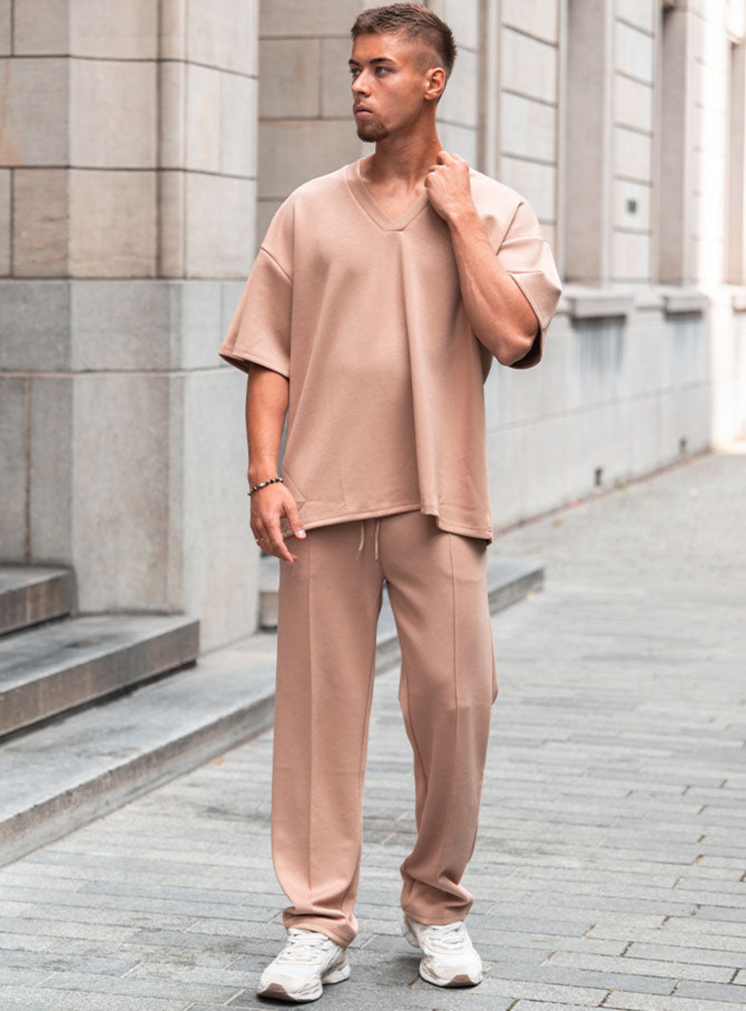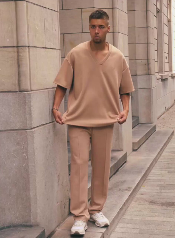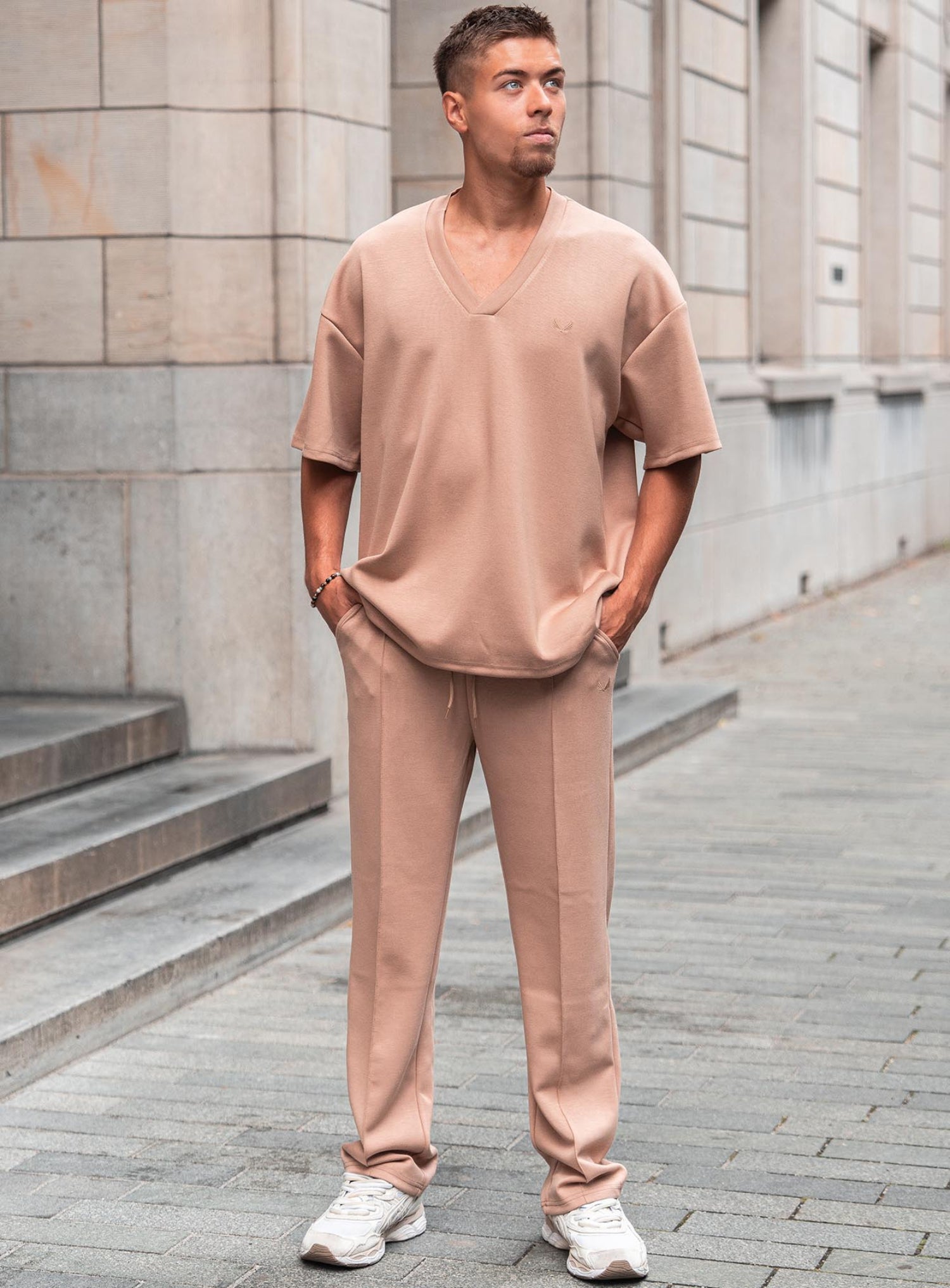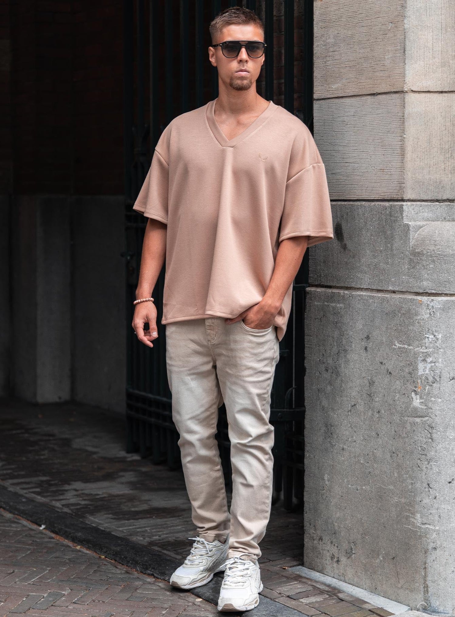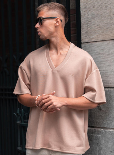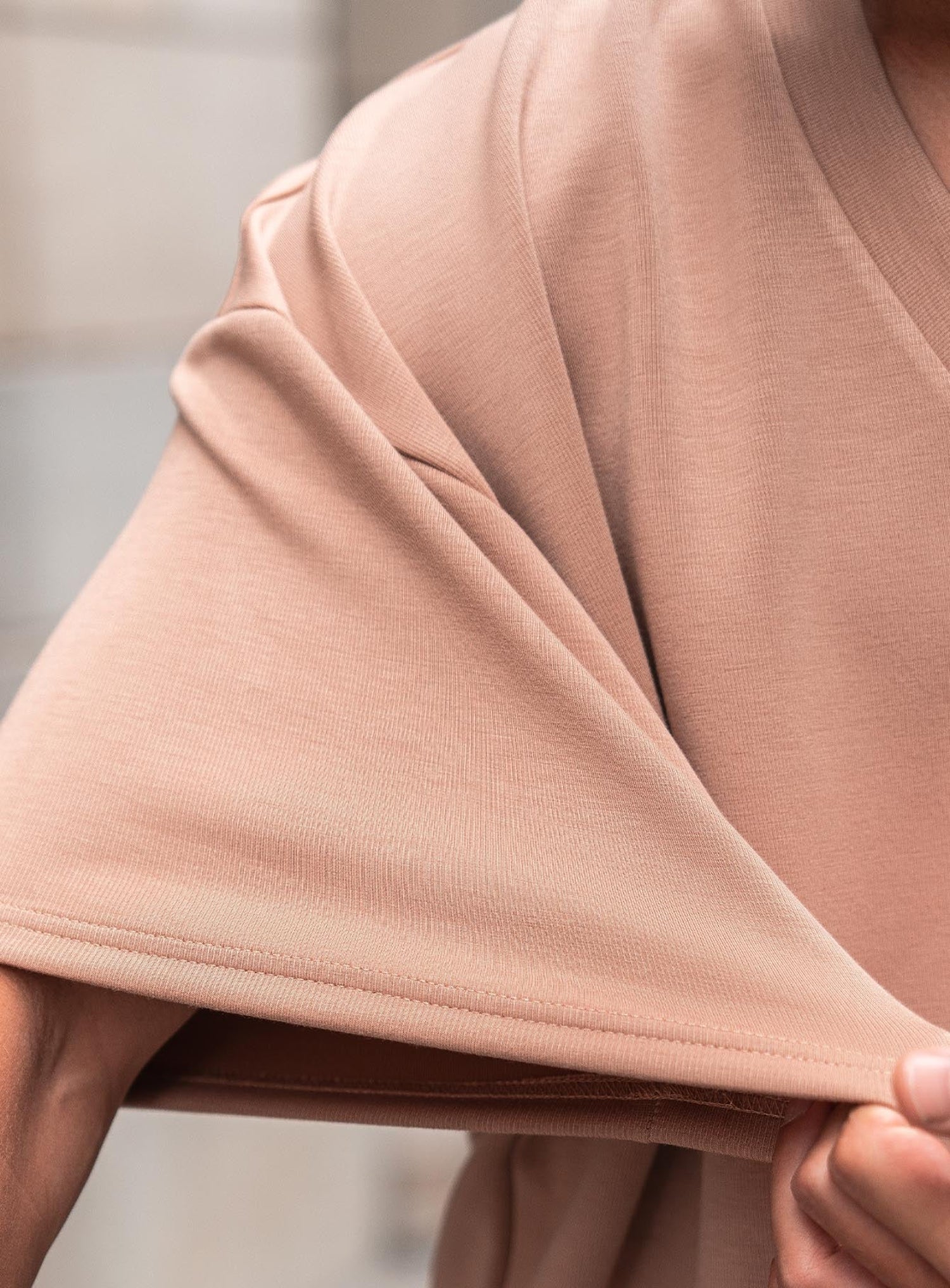 The Allen T-shirt is built for off-duty comfort with a modern oversized fit. It’s soft, structured and relaxed in all the right ways. The wide sleeves, dropped shoulders and clean V-neck create a bold silhouette that still feels effortless. Whether you’re heading to the gym, cooling down post-session or just running errands, the Allen works as the perfect pump cover. Roomy, breathable and confident without shouting for attention.
