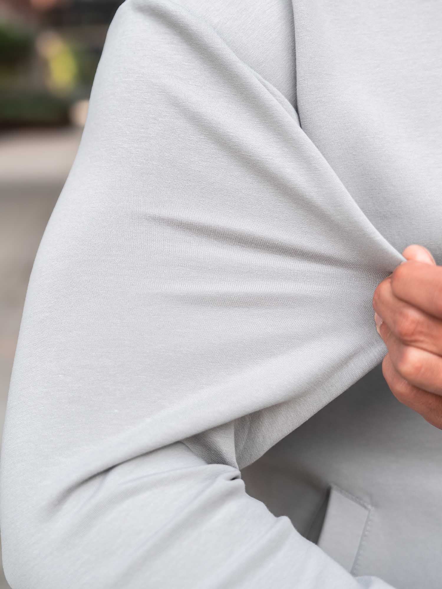 The Lennox hoodie takes the comfort of tech sweat and gives it a clean, confident edge. Designed in a regular fit with a structured hood and minimal detailing, it feels soft, smooth and slightly cool against the skin. This is part of a new class of luxury knits that combine stretch, breathability and a refined feel made to move with you. Built for rest days, travel or off-duty moments that still call for presence, it fits clean across the chest and shoulders without ever feeling tight.