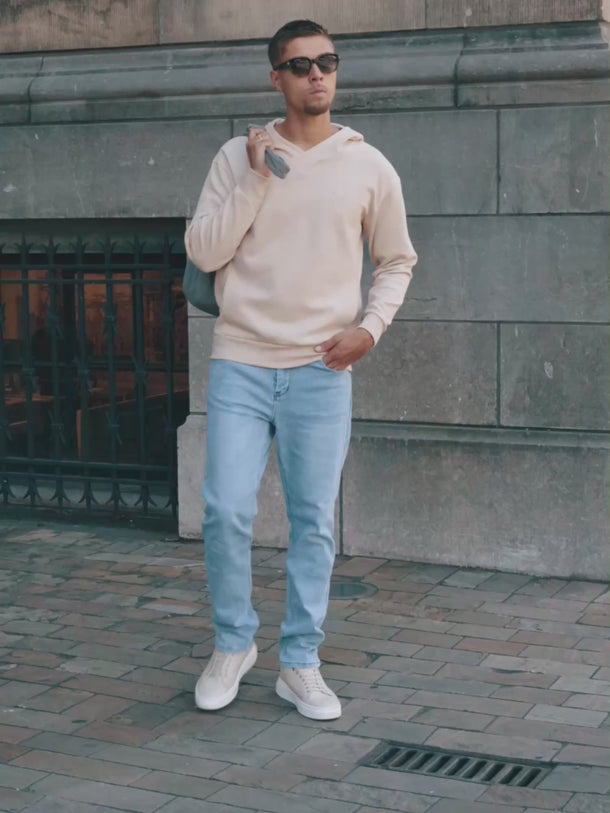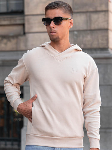 The Shane hoodie brings weight, texture and a clean shape into one solid piece. Made from heavy piqué, it combines a structured look with a breathable feel that keeps you comfortable all day. The regular fit gives you room without looking loose, while the crossover hood adds a quiet design twist. It is built to hold its form, move with you and step up any casual look without trying too hard.