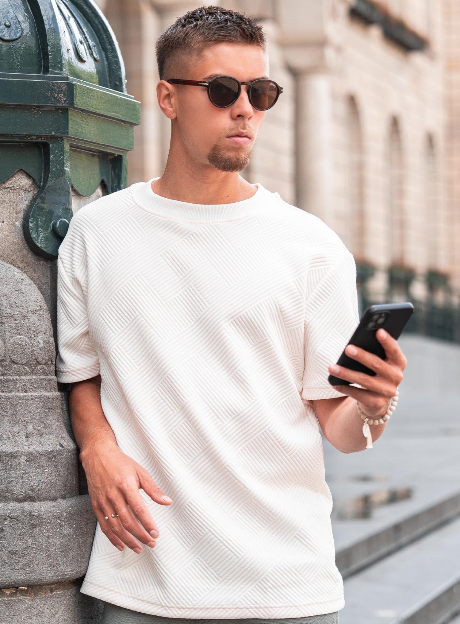 The Titan-MD T-shirt brings an easygoing look with a subtle edge. Built on the same trusted base as the original Titan, this version features a distinct geometric texture that adds quiet character without going over the top. The regular fit gives it a relaxed yet clean silhouette, while the soft fabric blend keeps things breathable and comfortable all day. Whether you’re layering or wearing it solo, this shirt holds its own effortlessly.