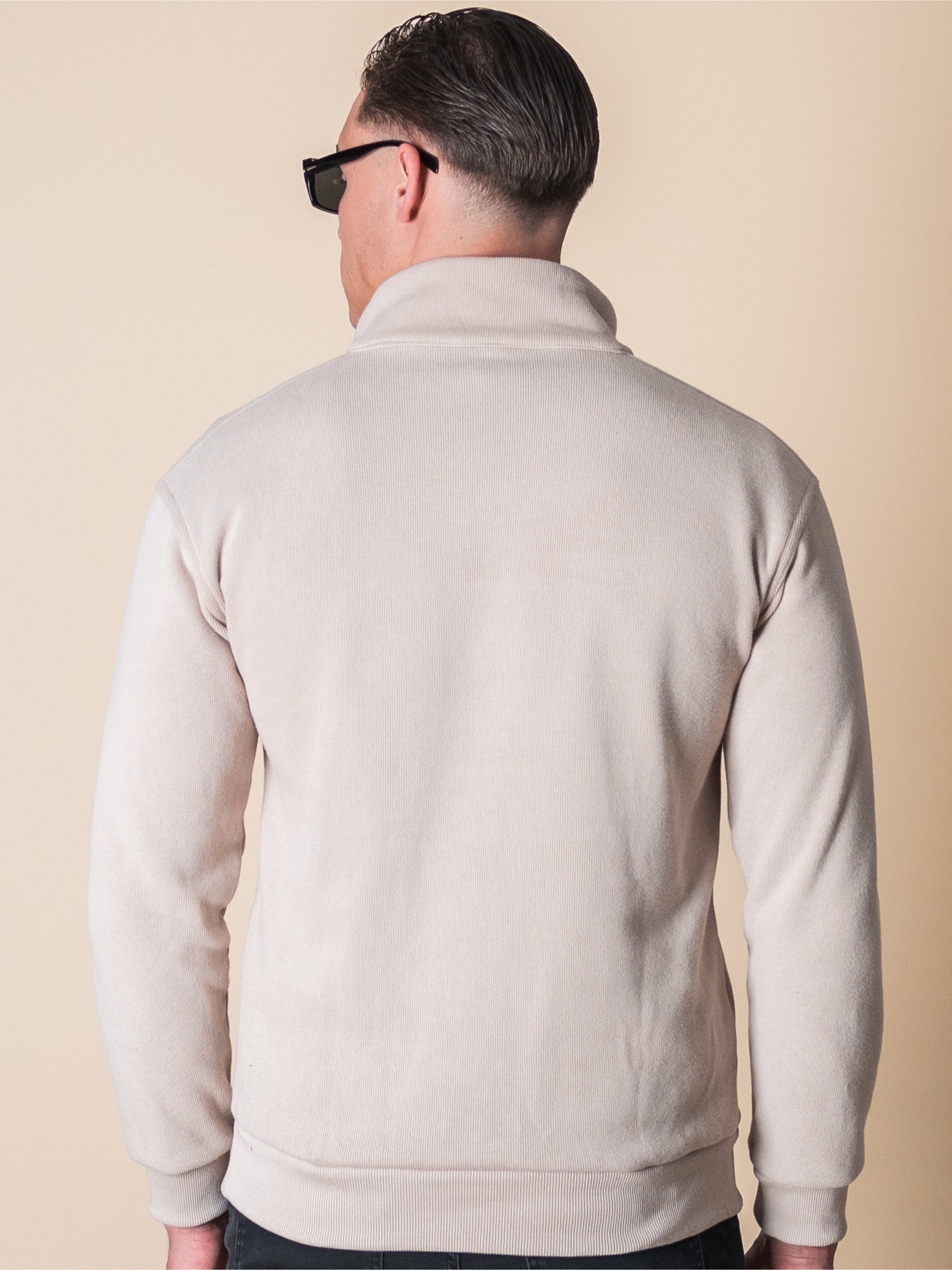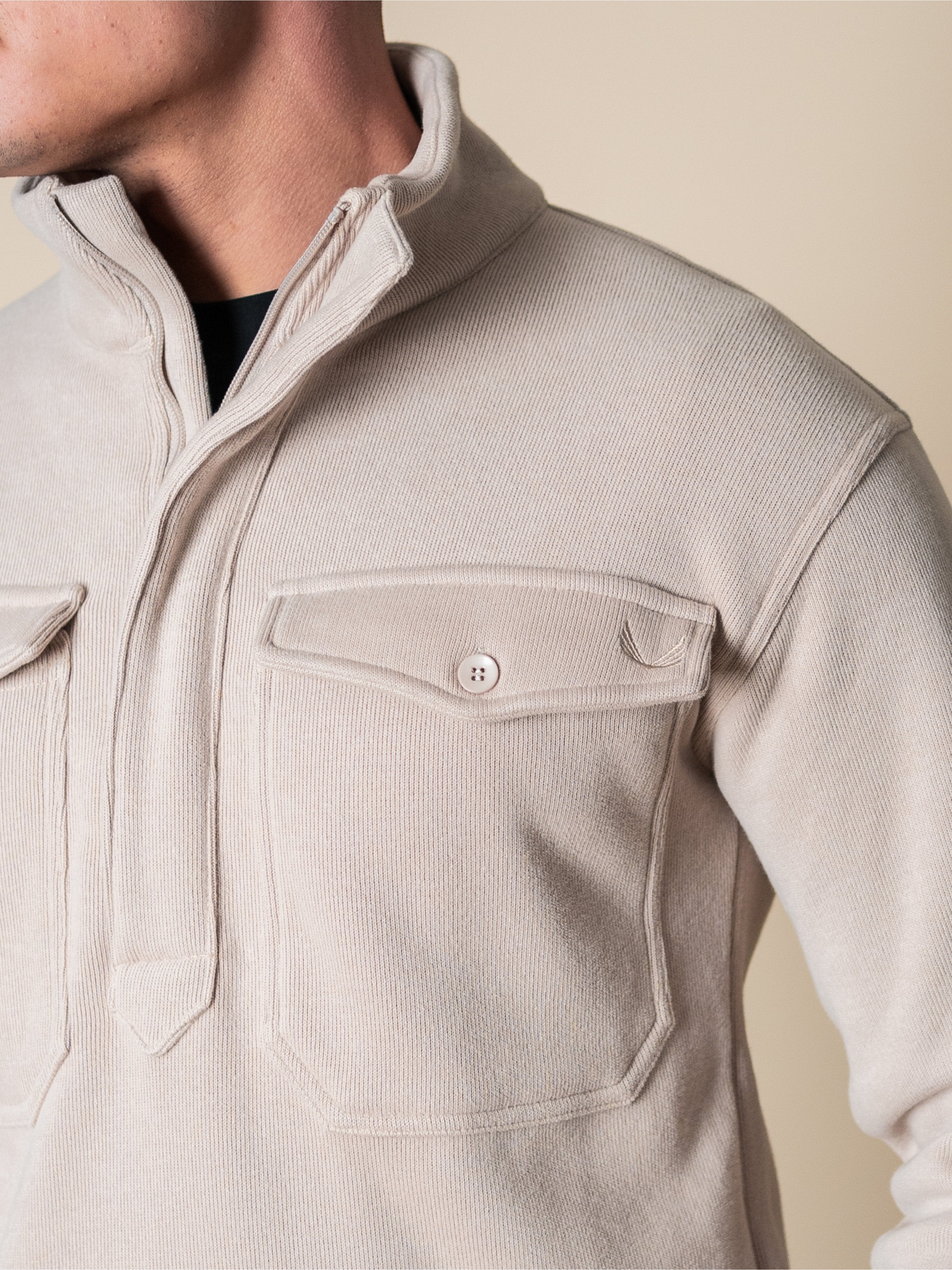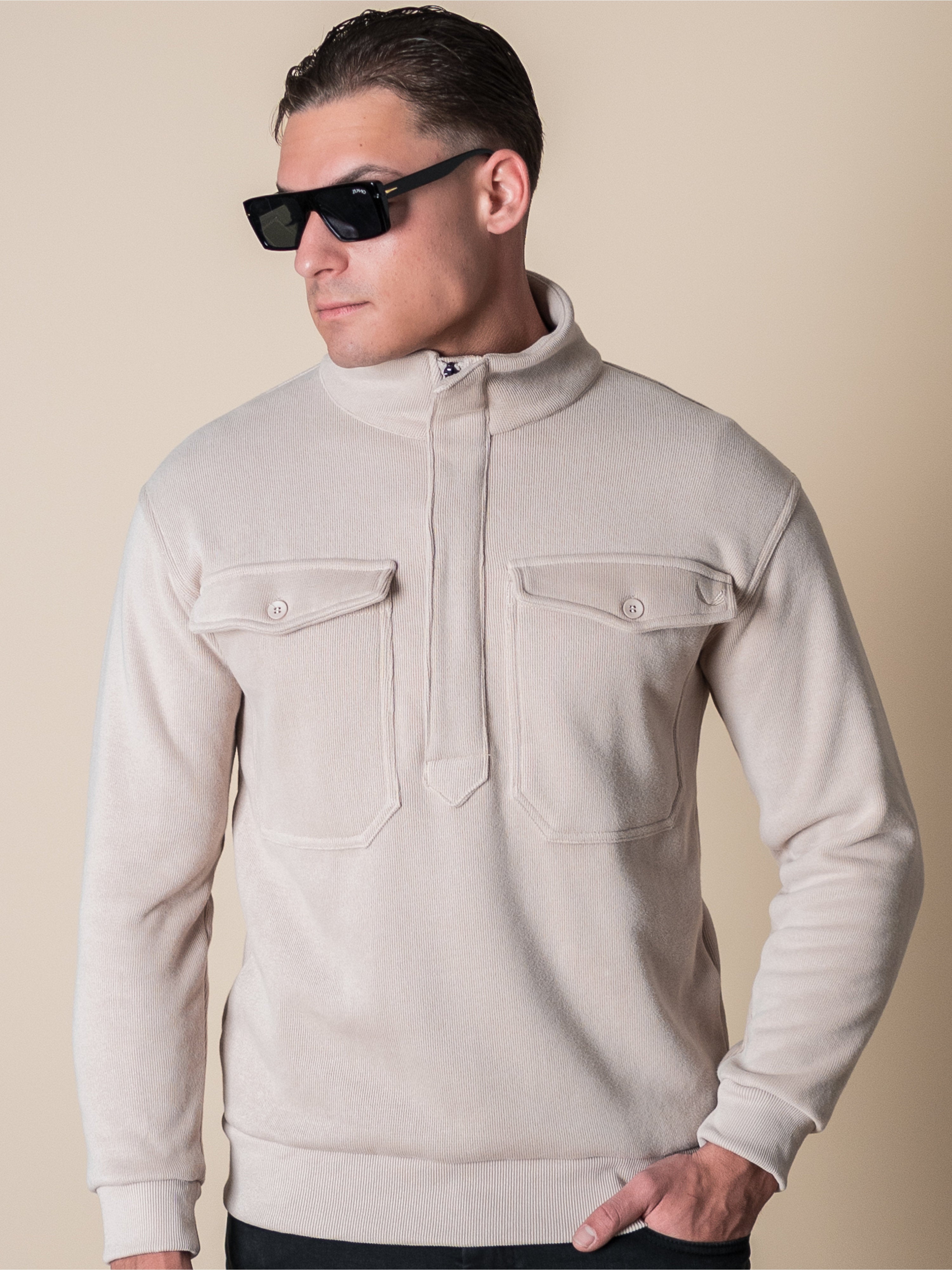 The Victor is built for warmth without losing edge. Cut in a regular fit, this pullover combines a structured outer look with a fleece-lined interior that keeps you comfortable when the temperature drops. The half-zip front and twin chest pockets add utility, while the clean silhouette makes it easy to style up or down. Strong in presence, effortless in wear.
