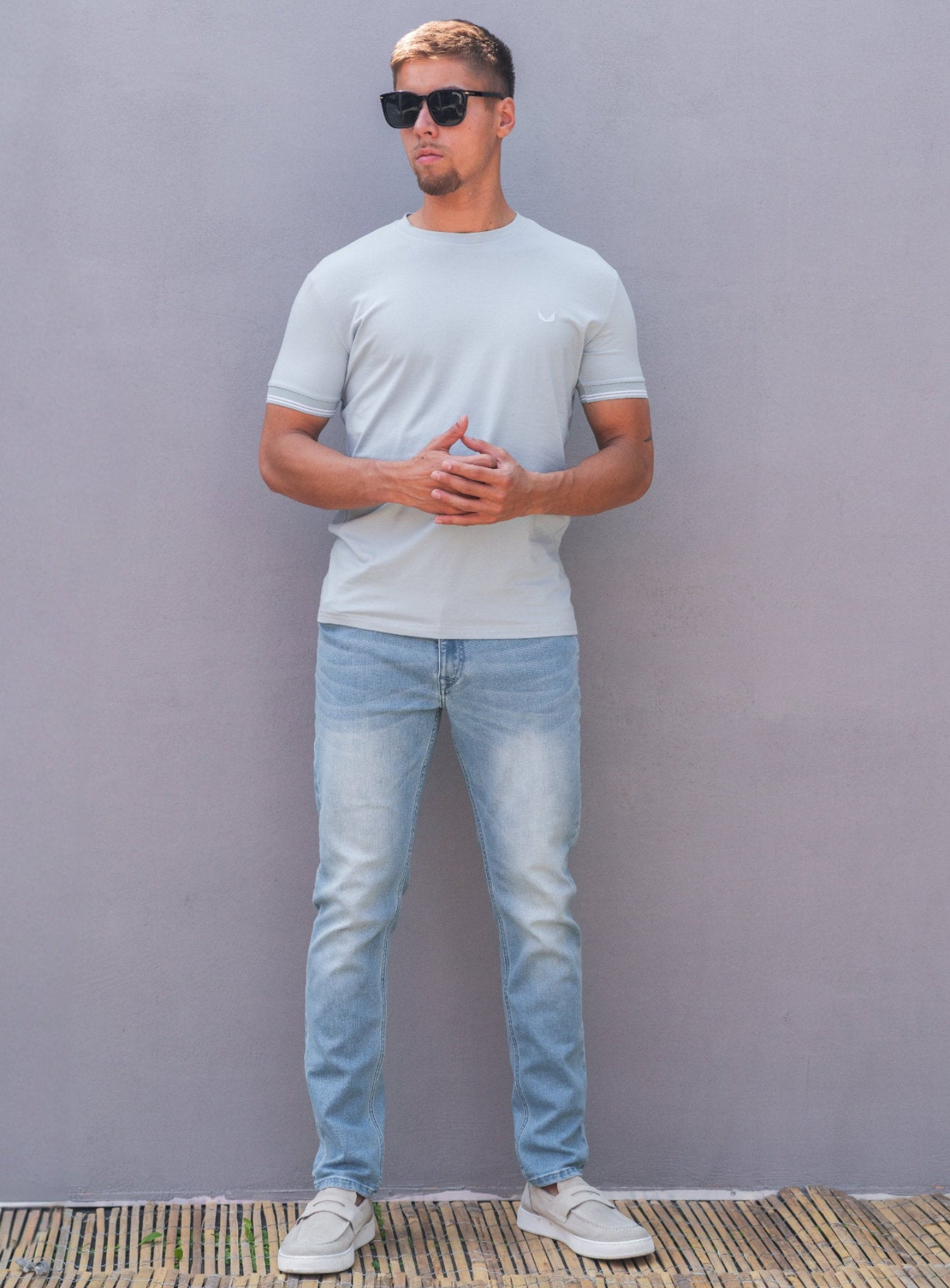 The Blake T-shirt is made for guys who care about the little details. It’s a refined take on a proven essential, built on the same trusted base as our slim fit tee. The design is clean, structured and made to flatter athletic builds. What sets this version apart are the elasticated sleeve cuffs that add shape to your arms without feeling restrictive. Made from a soft cotton blend, it offers breathable comfort and just the right amount of stretch to move with you throughout the day. Subtle upgrade, same easy versatility.