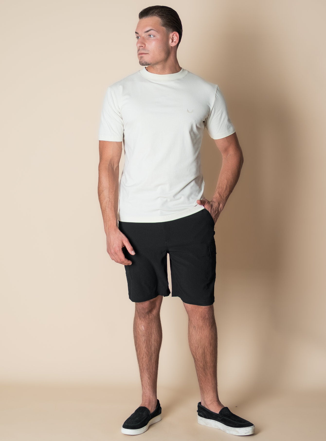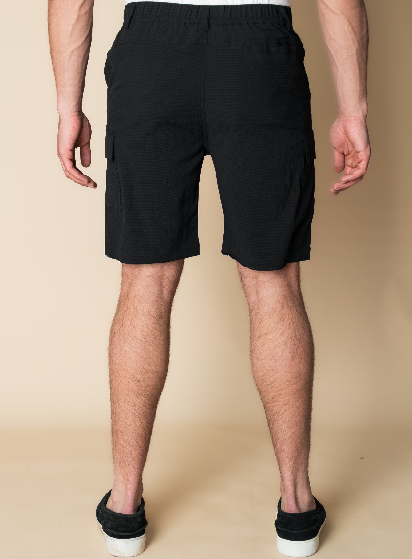 De Bomba shorts zijn gemaakt voor warme dagen waarop comfort en stijl hand in hand gaan. De stof is glad, licht rekbaar en voelt comfortabel aan bij elke beweging. Een subtiele, golvende textuur geeft ze een luchtig gevoel en een onderscheidende look. De regular fit draagt relaxed op de dij, met een elastische tailleband aan de achterkant voor extra flexibiliteit. Dankzij de cargozakken gaan stijl en functionaliteit moeiteloos samen. Schoon, comfortabel en precies goed voor al je zomerplannen.
