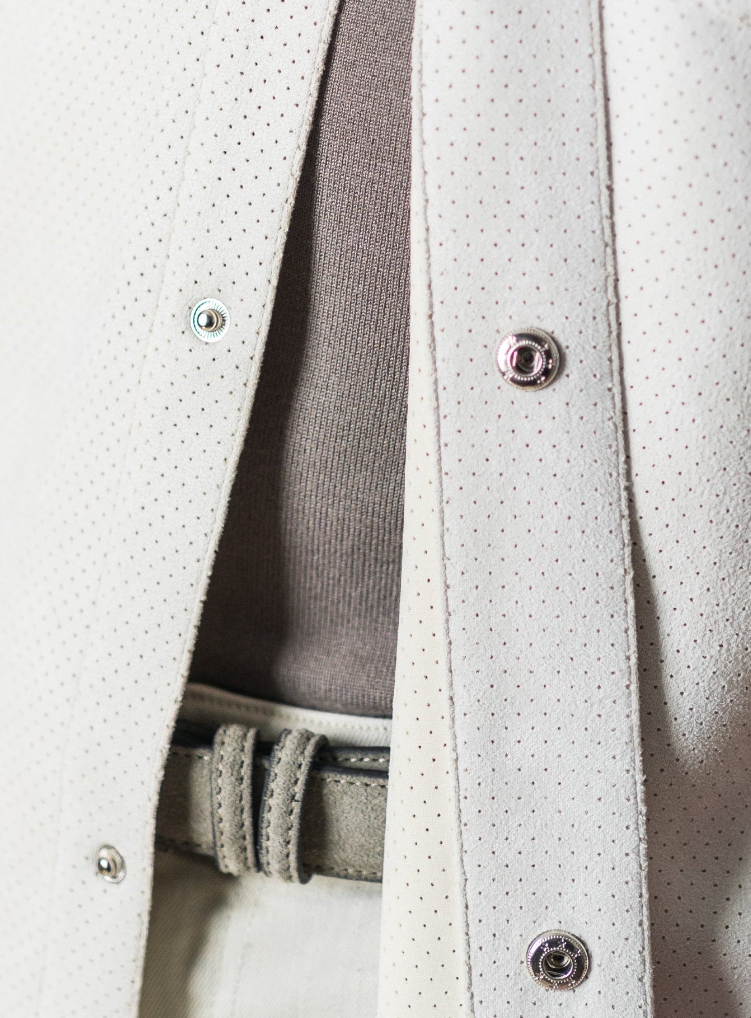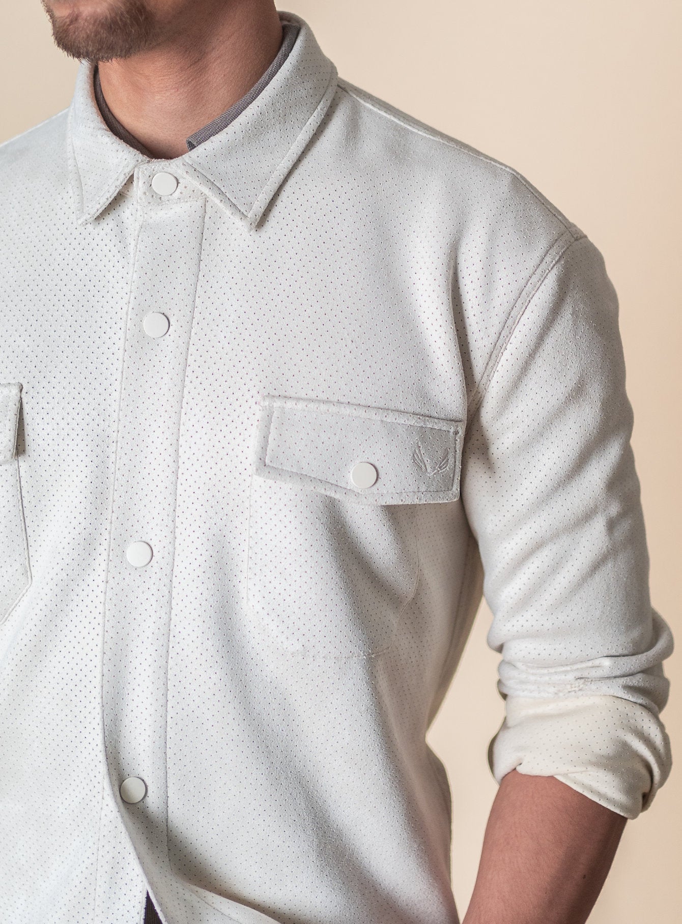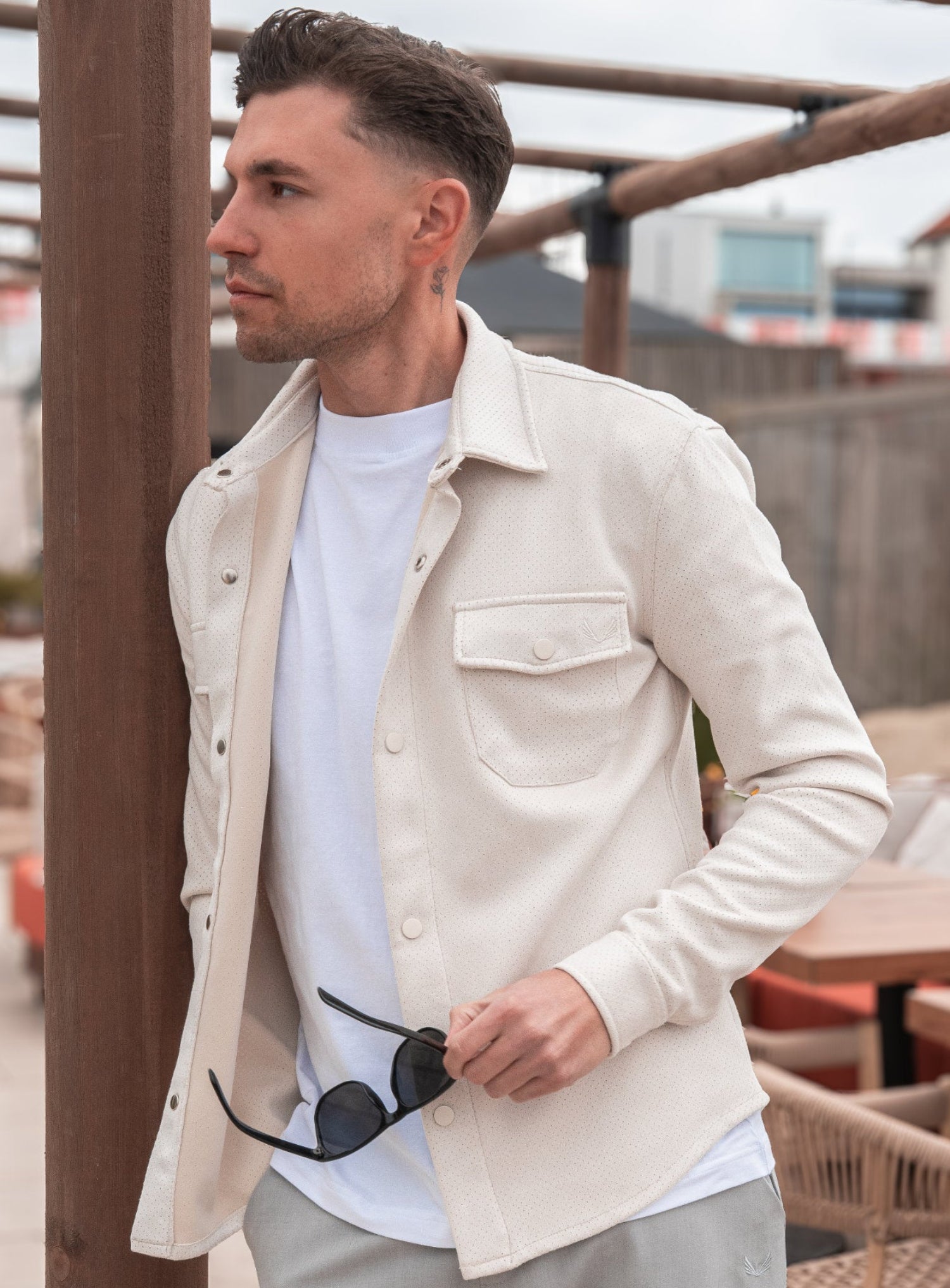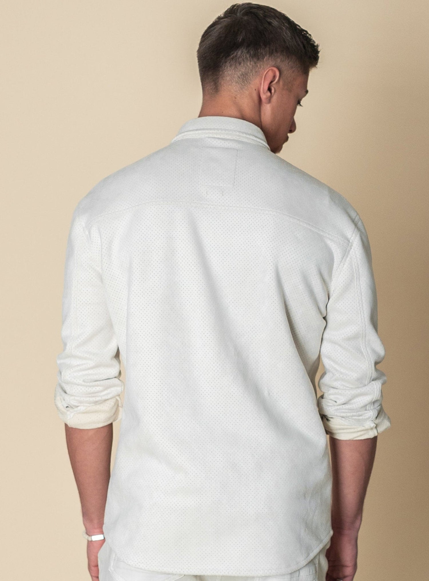 Het Buck overshirt is precies wat je zoekt. Het voelt heerlijk zacht aan dankzij de luxe suèdine en sluit perfect aan met de regular fit. De geperforeerde textuur maakt het luchtig en ademend, ideaal voor lange dagen. Dankzij de lichtgewicht constructie kun je het gemakkelijk over een T-shirt dragen en blijft het de hele dag comfortabel. Dit is het overshirt waar je keer op keer naar zult grijpen.