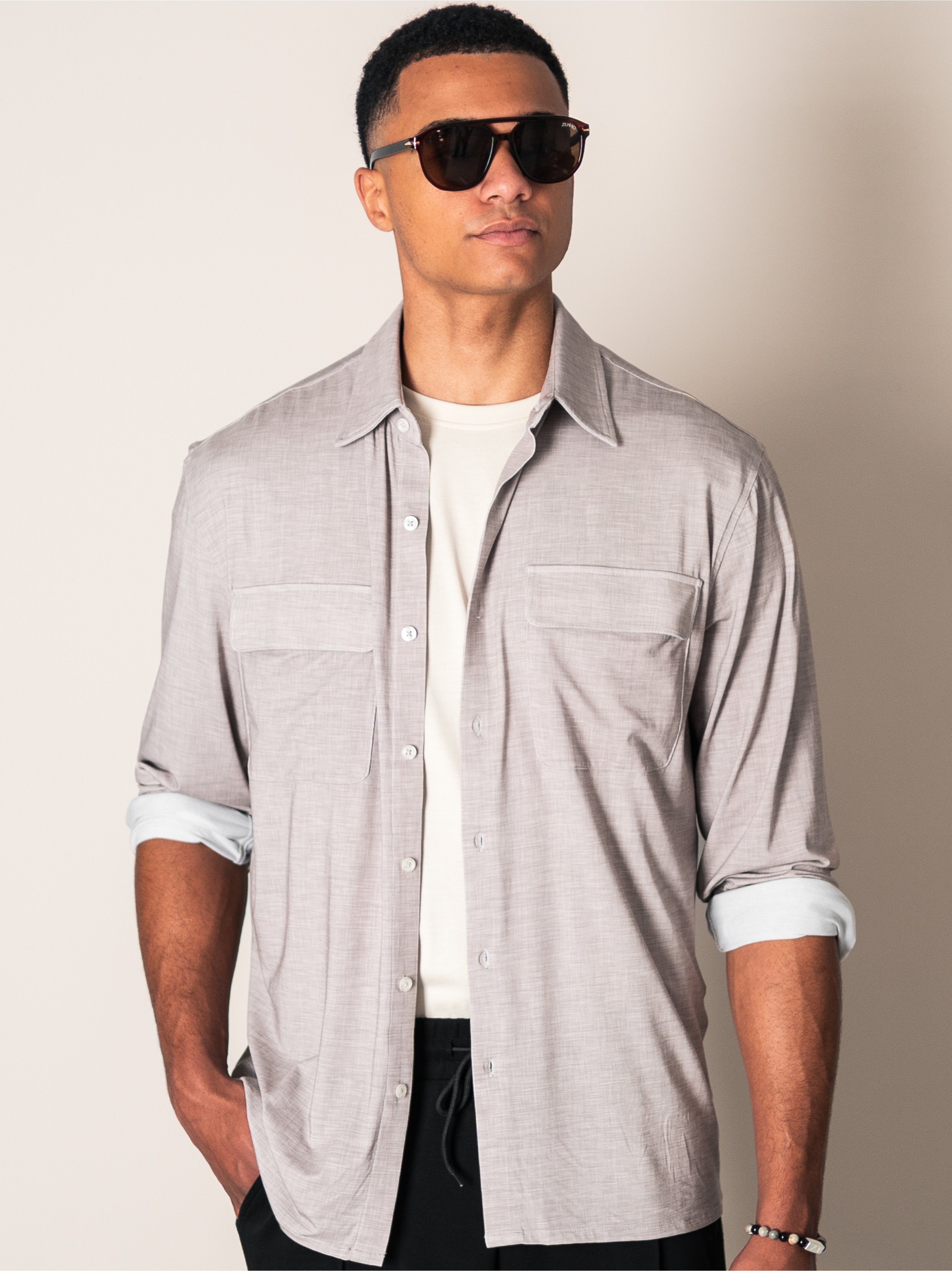 The Garage is a premium men’s overshirt built for comfort, movement and versatility. Designed in a regular fit, it has a clean silhouette that drapes naturally over the body. The cotton modal elastane fabric blend gives it a soft handfeel, high stretch and excellent shape retention. Lightweight and breathable, this overshirt is made to move with you and hold its refined look throughout the day. Whether you wear it as a light top layer or part of a smart casual outfit, the Garage brings effortless style with elevated comfort.