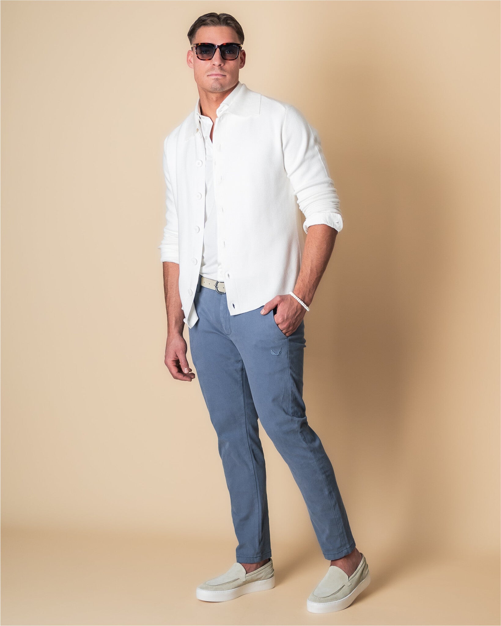 The Lamar chino is anything but an ordinary chino. With its slim fit design, it fits perfectly and highlights your silhouette, while the stretch in the fabric provides exceptional comfort and freedom of movement. The subtly washed look adds a modern twist, setting it apart from traditional chinos. Functional side pockets and stylish flap back pockets make the Lamar both practical and elegant. A pair of trousers you’ll want to wear every day and that always makes an impression.