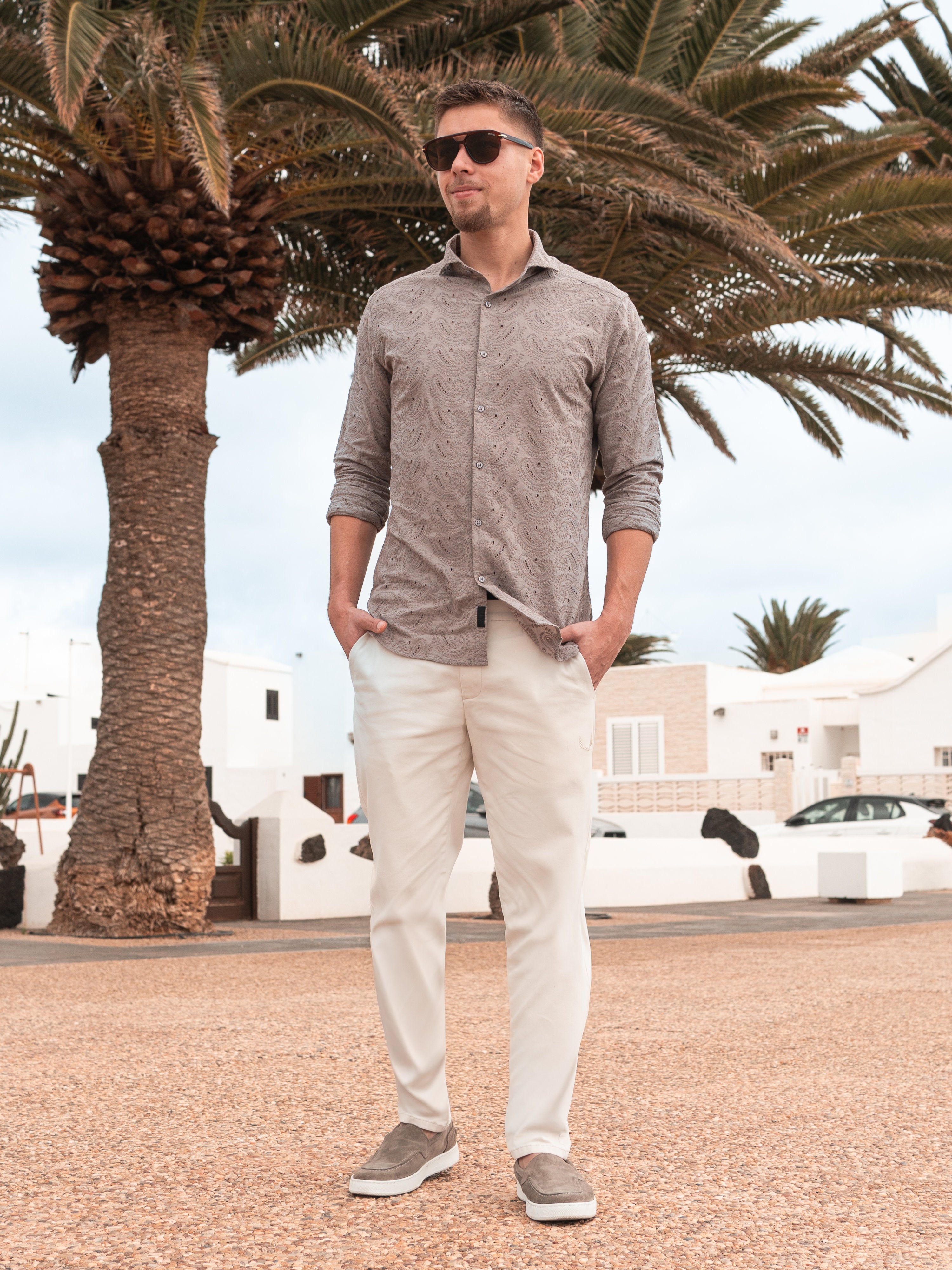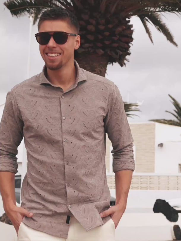 The strength of the Truffle variant lies in its subtle contrast; the play of shadows within the perforations brings the paisley design to life in a sophisticated way. This slim-fit shirt is designed for the man who appreciates "Quiet Luxury"—items that stand out through their quality and unique texture rather than loud logos.