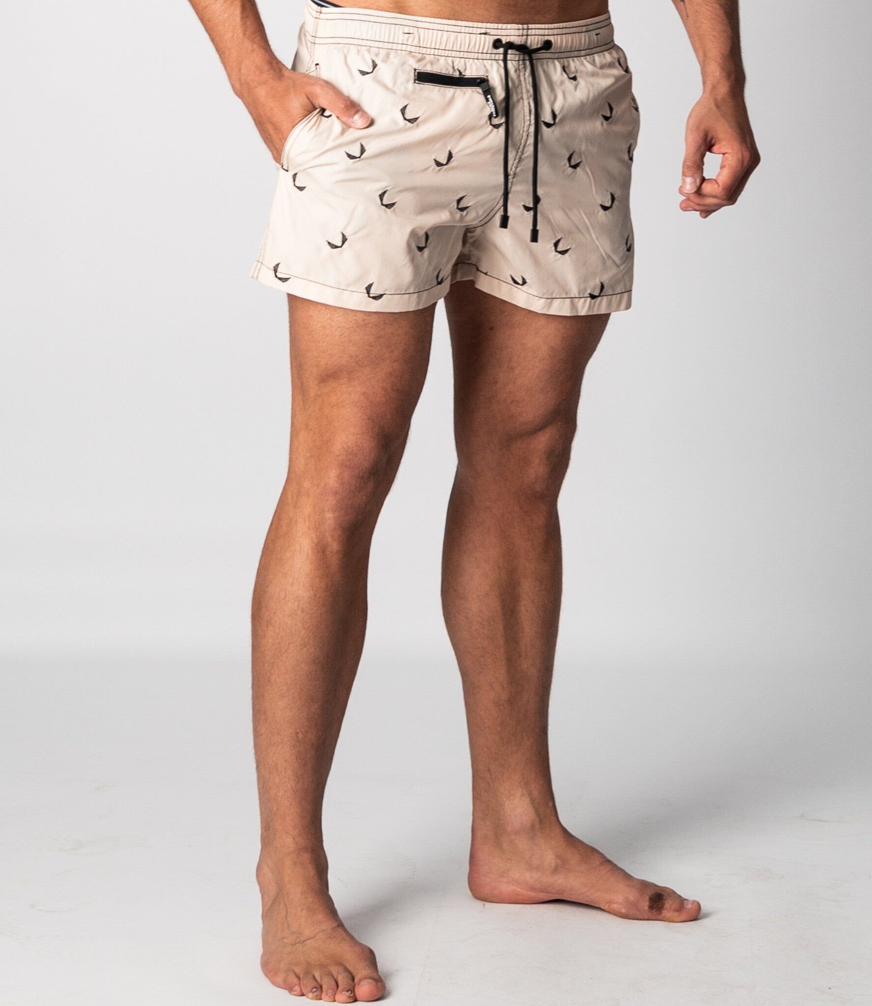 Make waves and turn heads in the Carpa-Allover swimshort! Whether you're hitting the pool or the beach, this slim fit swimwear is a must-have for any fashion-conscious guy. With its quick-drying fabric and practical pockets, you can stay comfortable and stylish all day long. The elastic waistband and drawstrings make for a perfect fit, while the embroidered logo pattern adds a touch of sophistication to your swim look. So if you want to make a statement with your swimwear, look no further than the Carpa-Allover swimshort. Don't just follow the trends, set them!