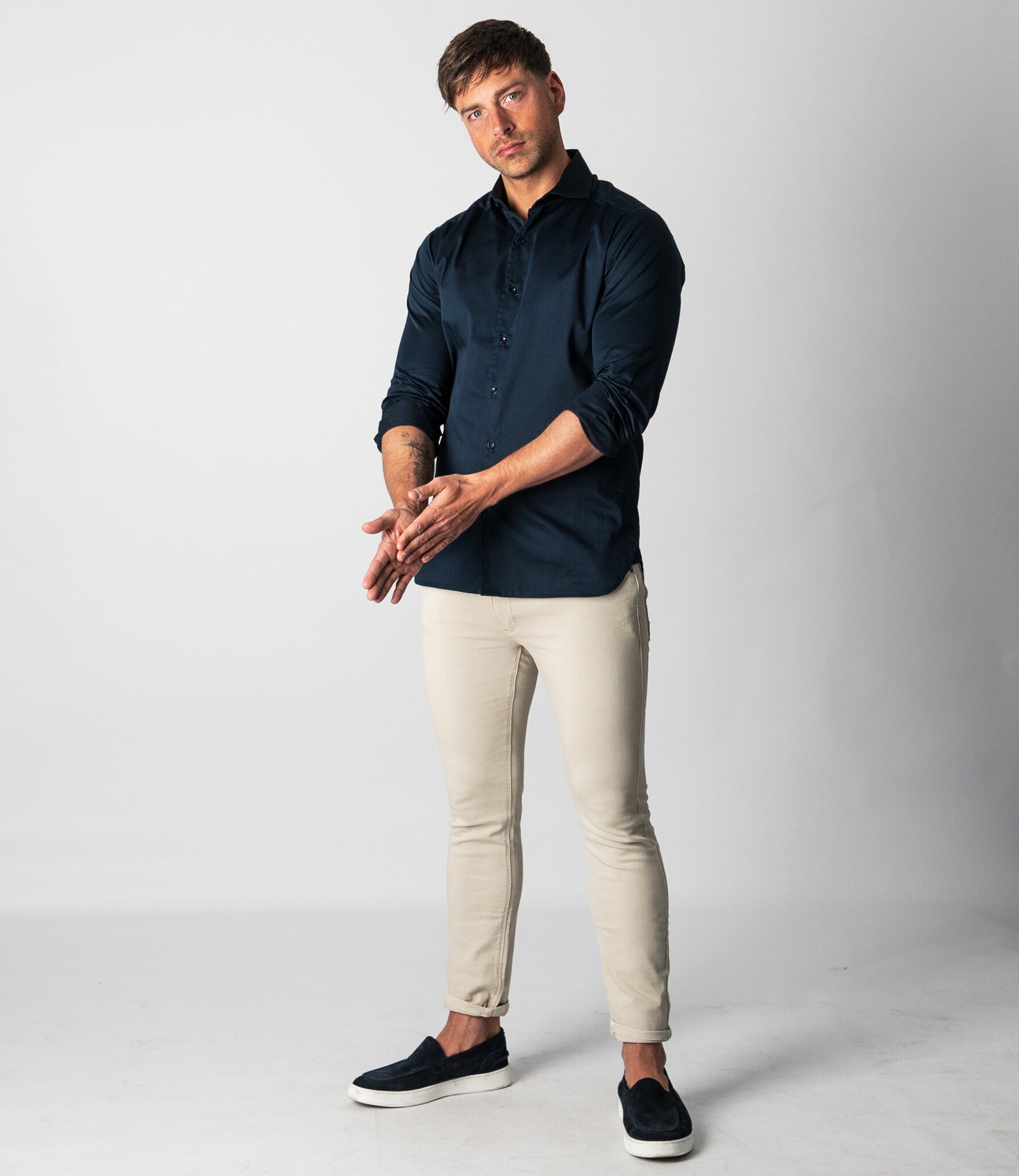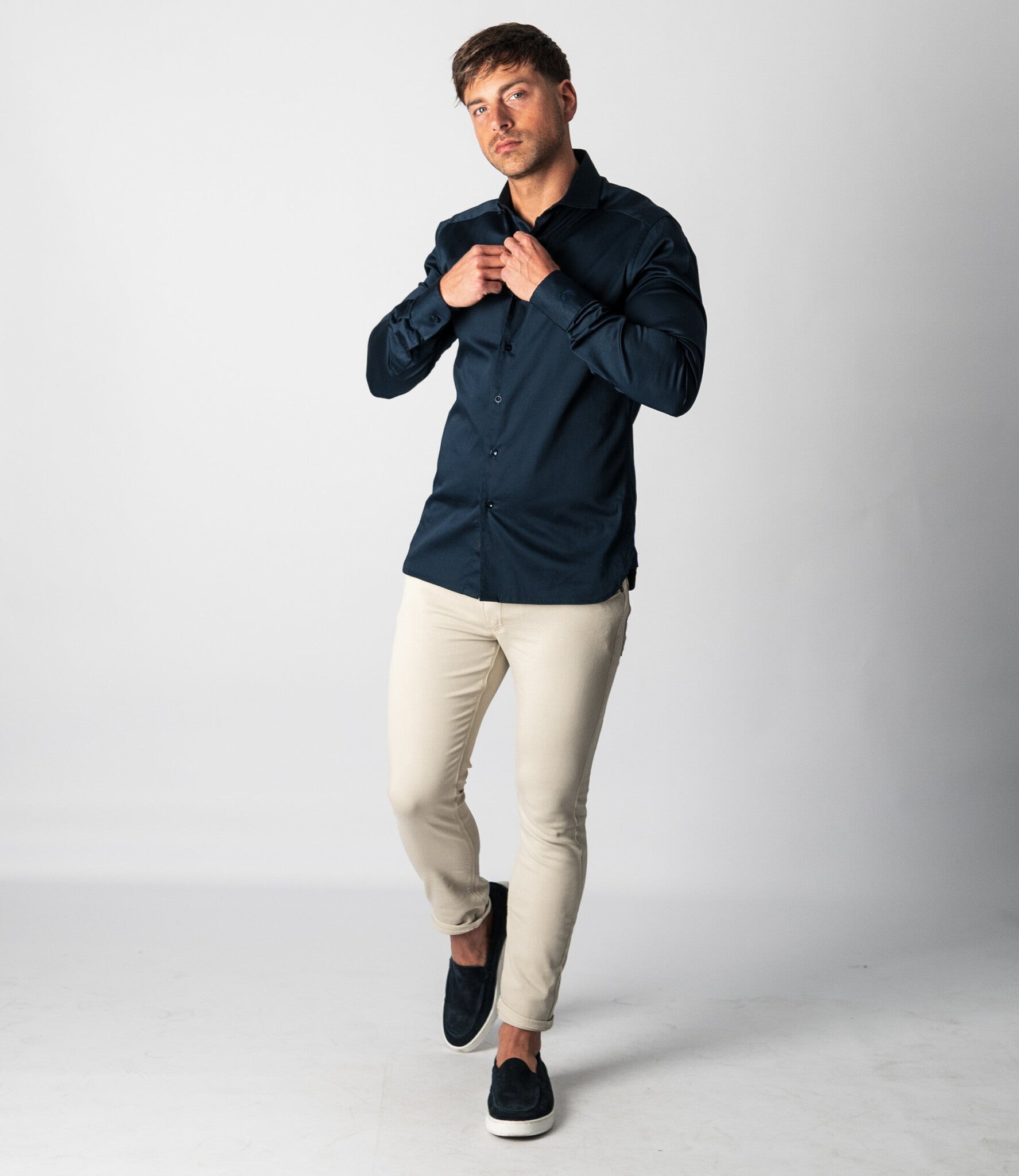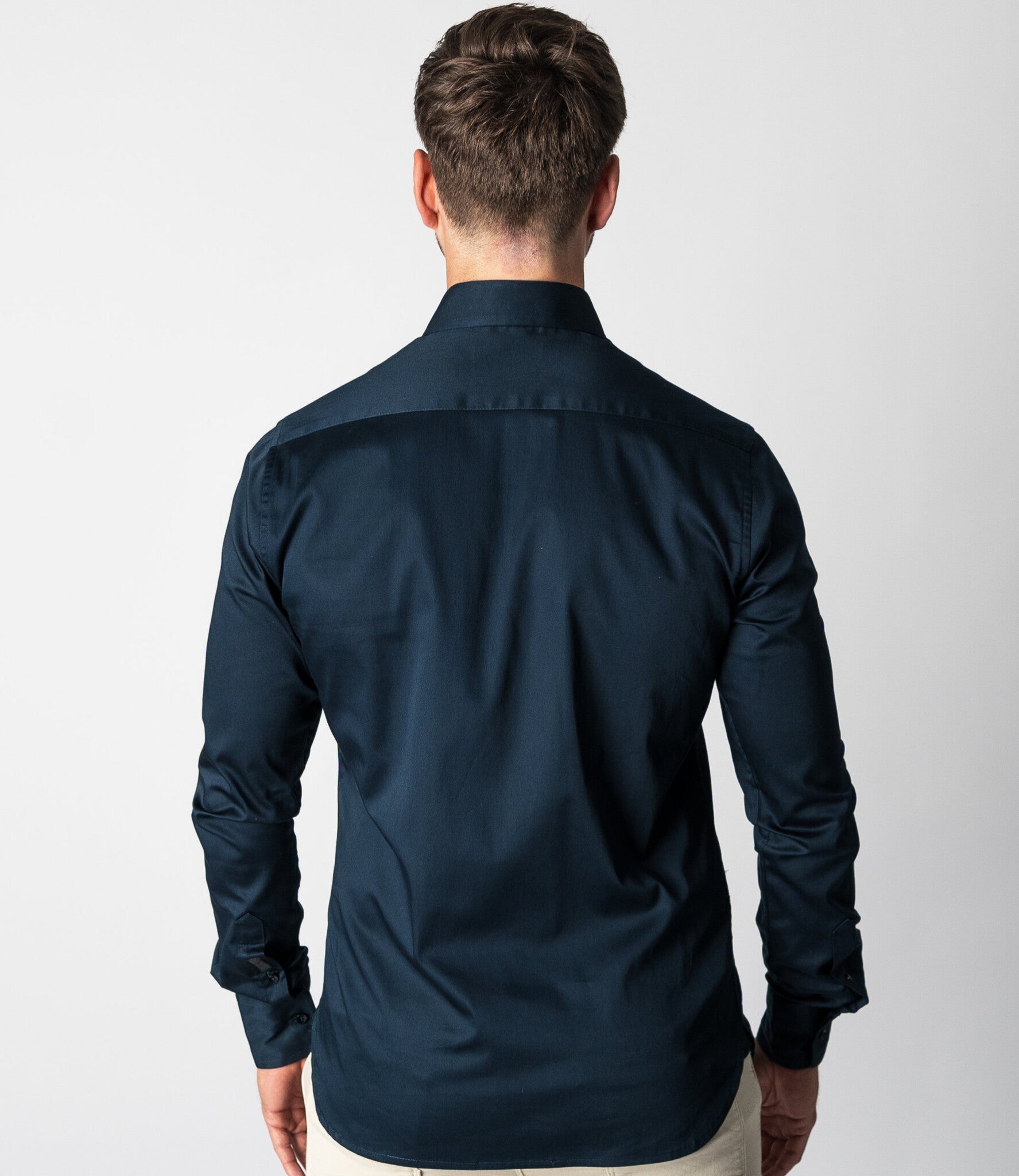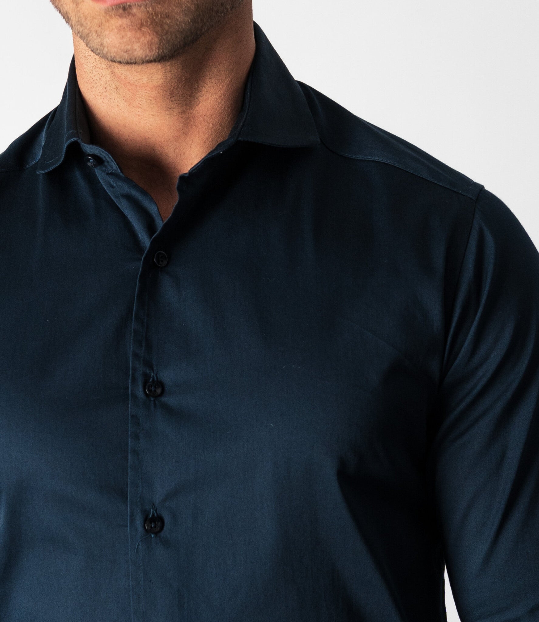 The Keith is a regular fit shirt with a cutaway collar. The cutaway collar appeared in the 1930s as an alternative to the classic, narrower collars. Because a cutaway collar has a wider spread, it was often worn in combination with a tie and a (wide) Windsor knot. Today, a cutaway collar is considerd an elegant alternative that makes a bigger statement than a standard collar. The shirt also looks great without a tie. The Keith has a satin woven fabric, which gives the shirt a subtle shine. This gives the timeless design of the Keith a modern, chic look. Wear the shirt with the top two buttons open for a sophisticated look. The Keith completes our line of essential shirts. The Keith shirts are available in multiple colors