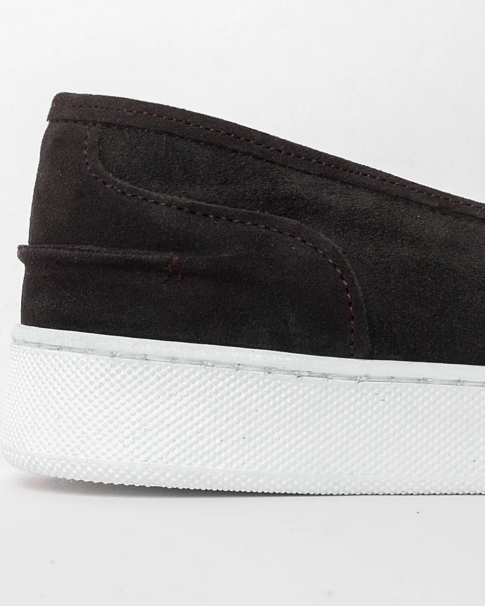 • Soft suede upper with a refined look • Smooth leather interior for comfort • Lightweight rubber sole with a sneaker feel • Slip on design for everyday ease • Clean lines for a modern versatile style • Works with tailoring denim or cropped trousers