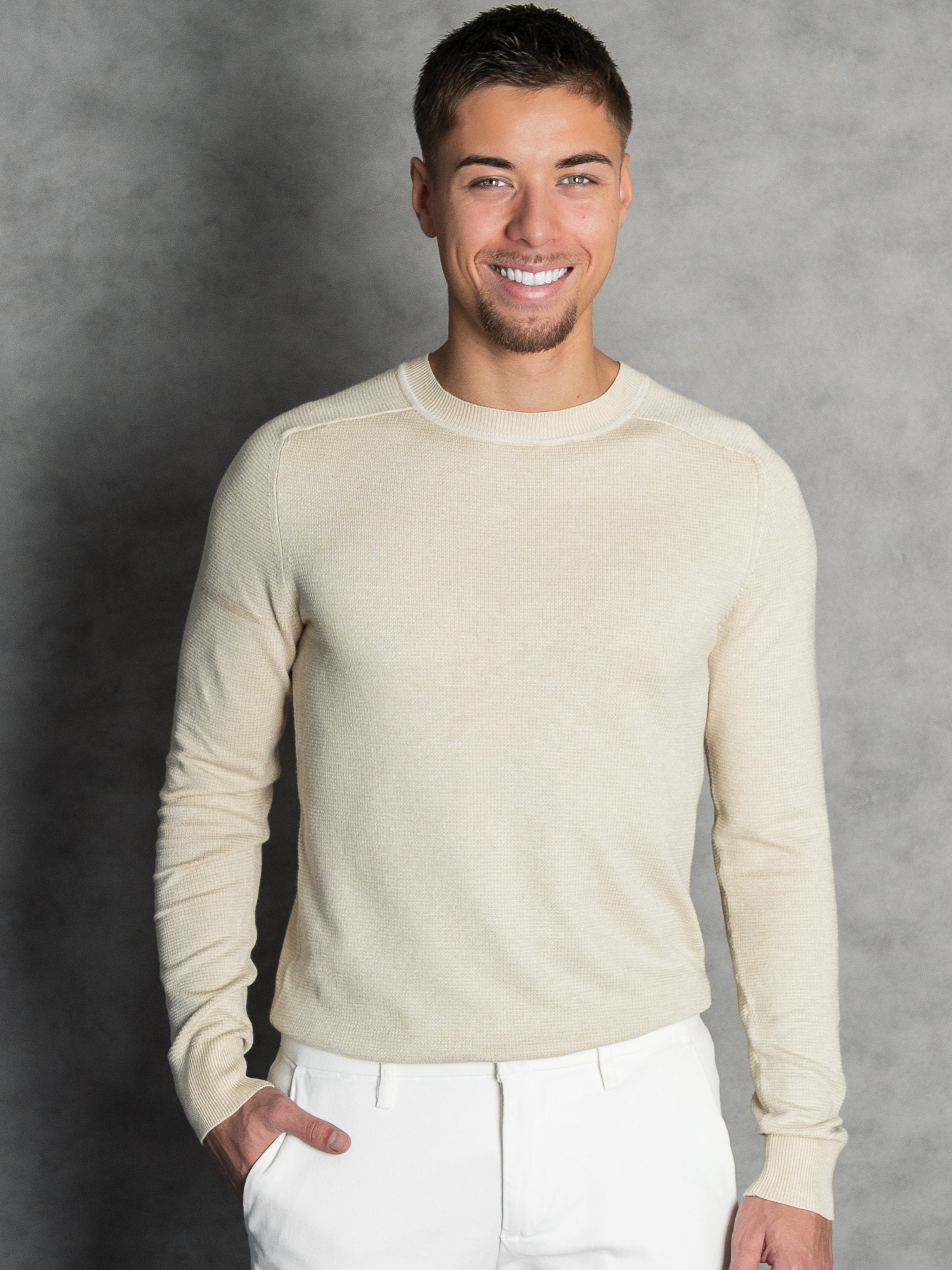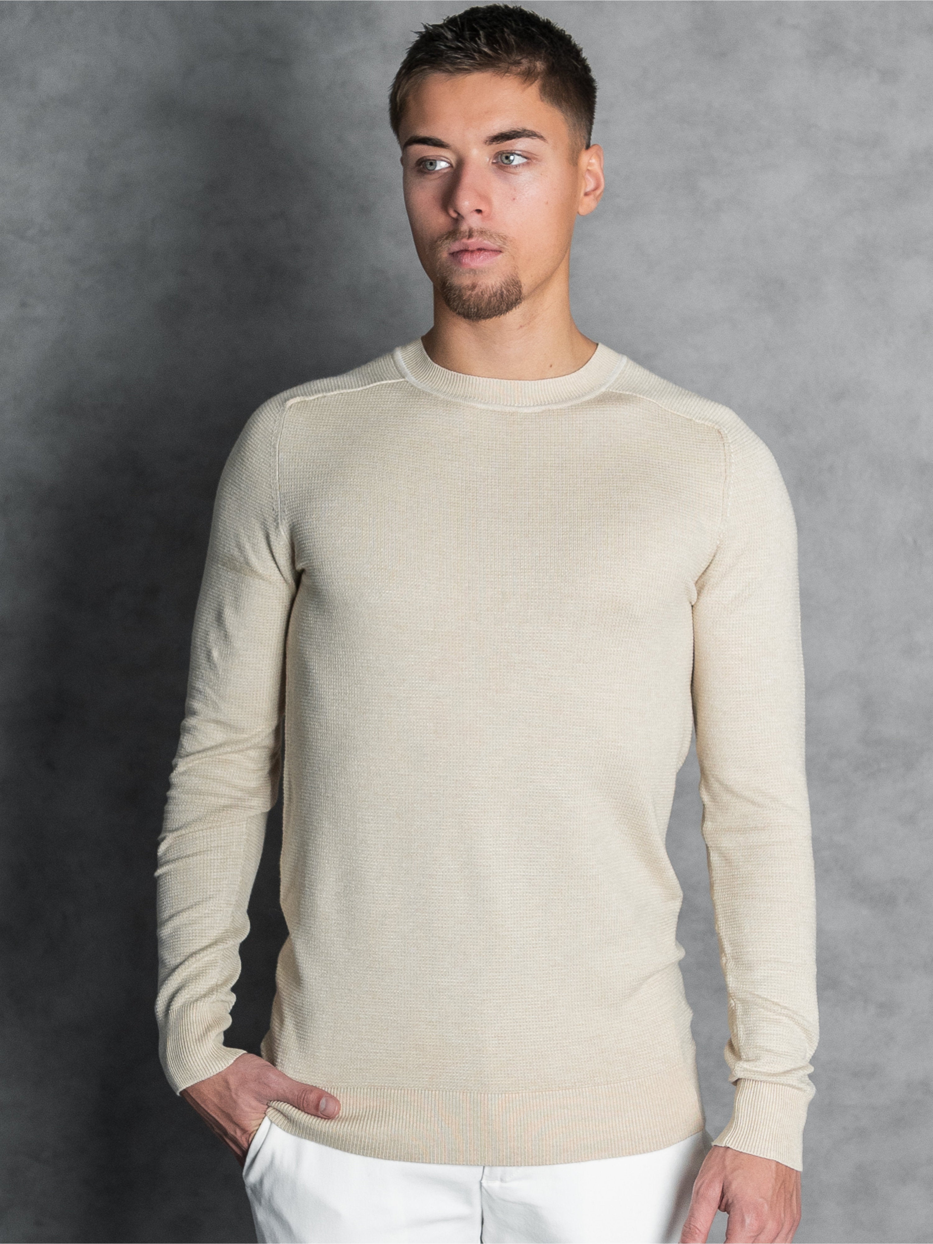 The Skipsby CamelCream is the brightest and most luxurious variant in the collection. The mix of warm camel and fresh cream tones creates a soft, sophisticated look that defines the "New Standard" in modern knitwear. It is the ideal textured alternative to a plain beige pullover.