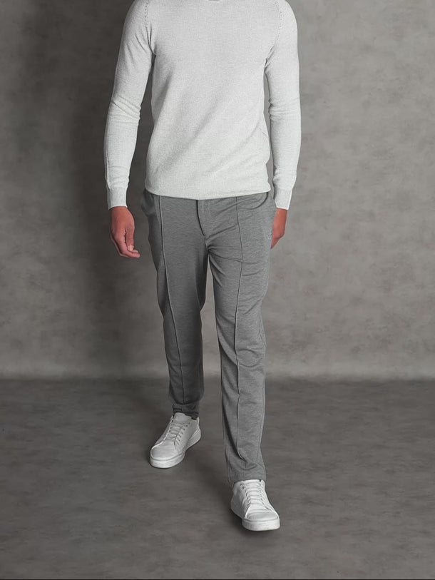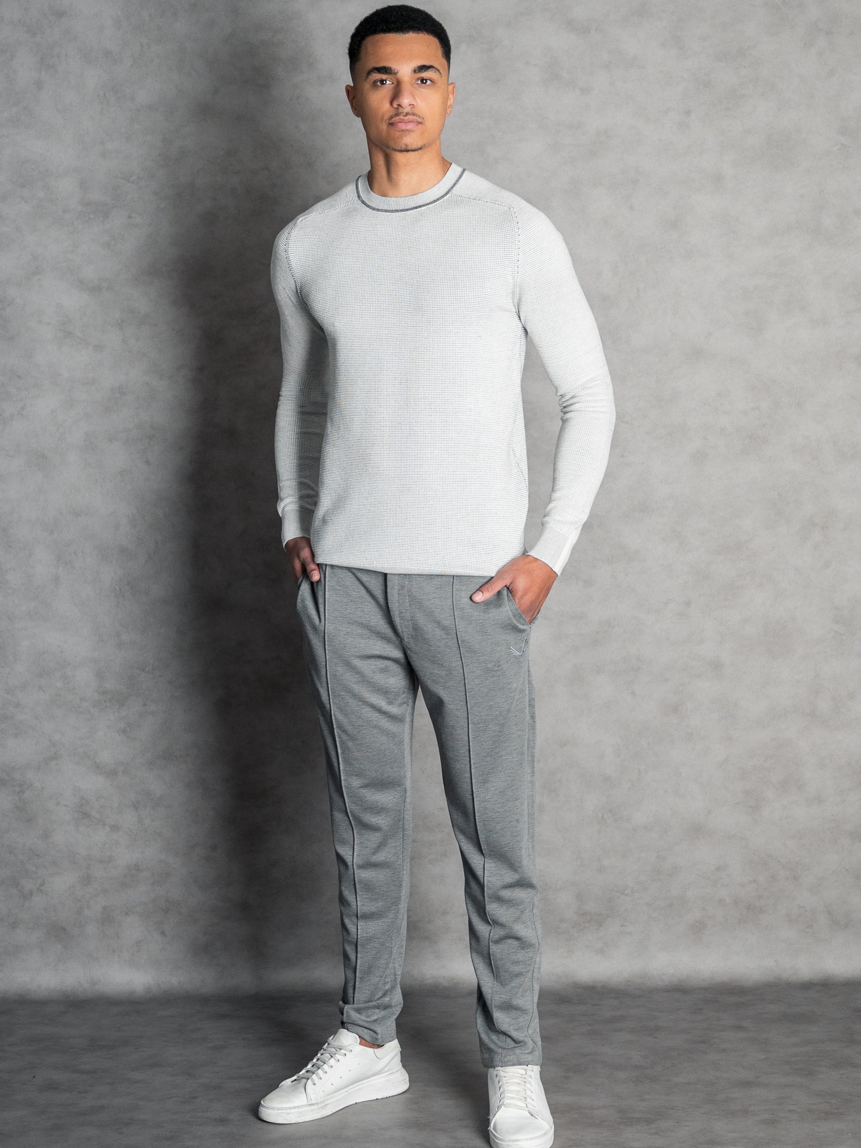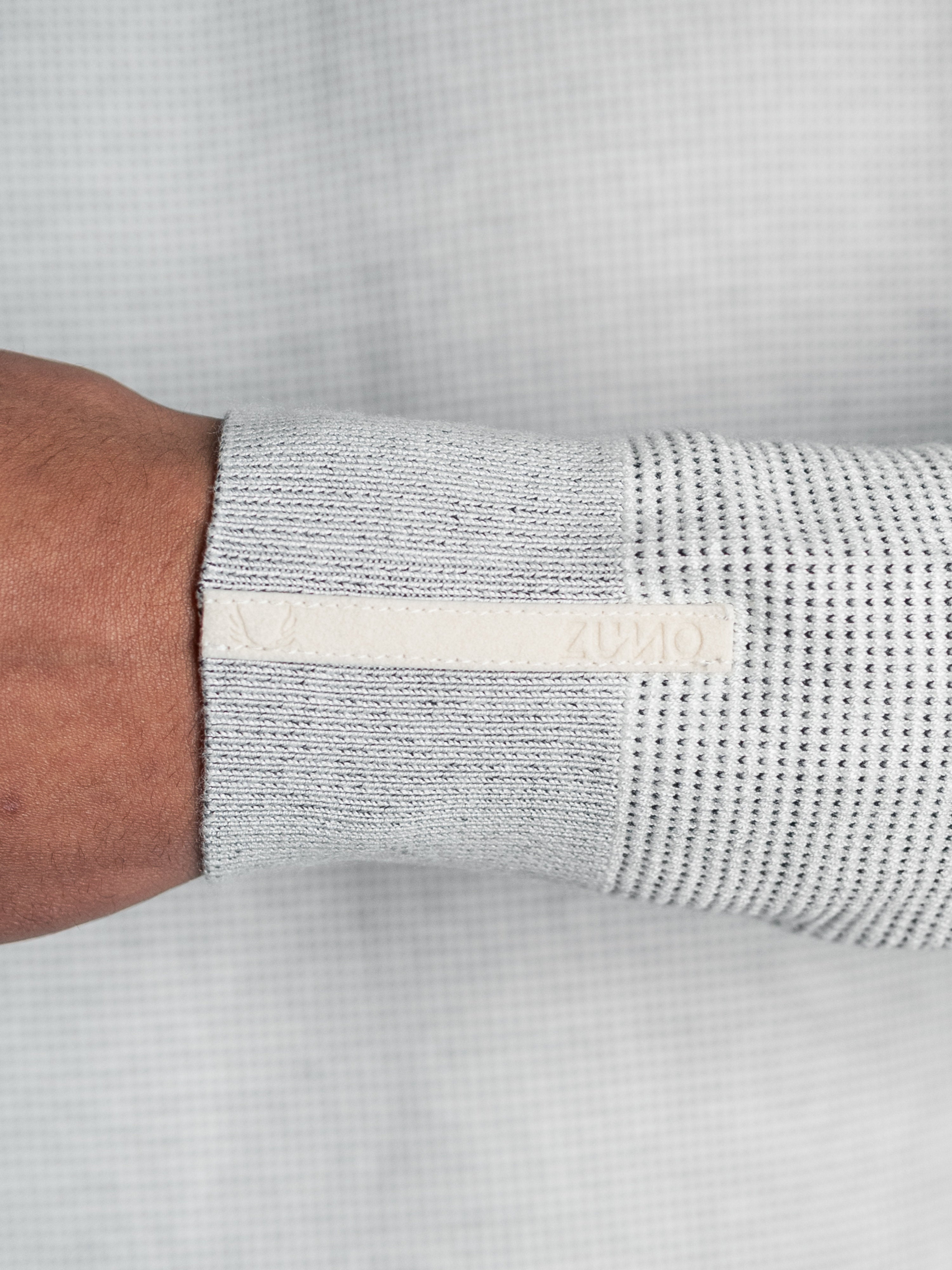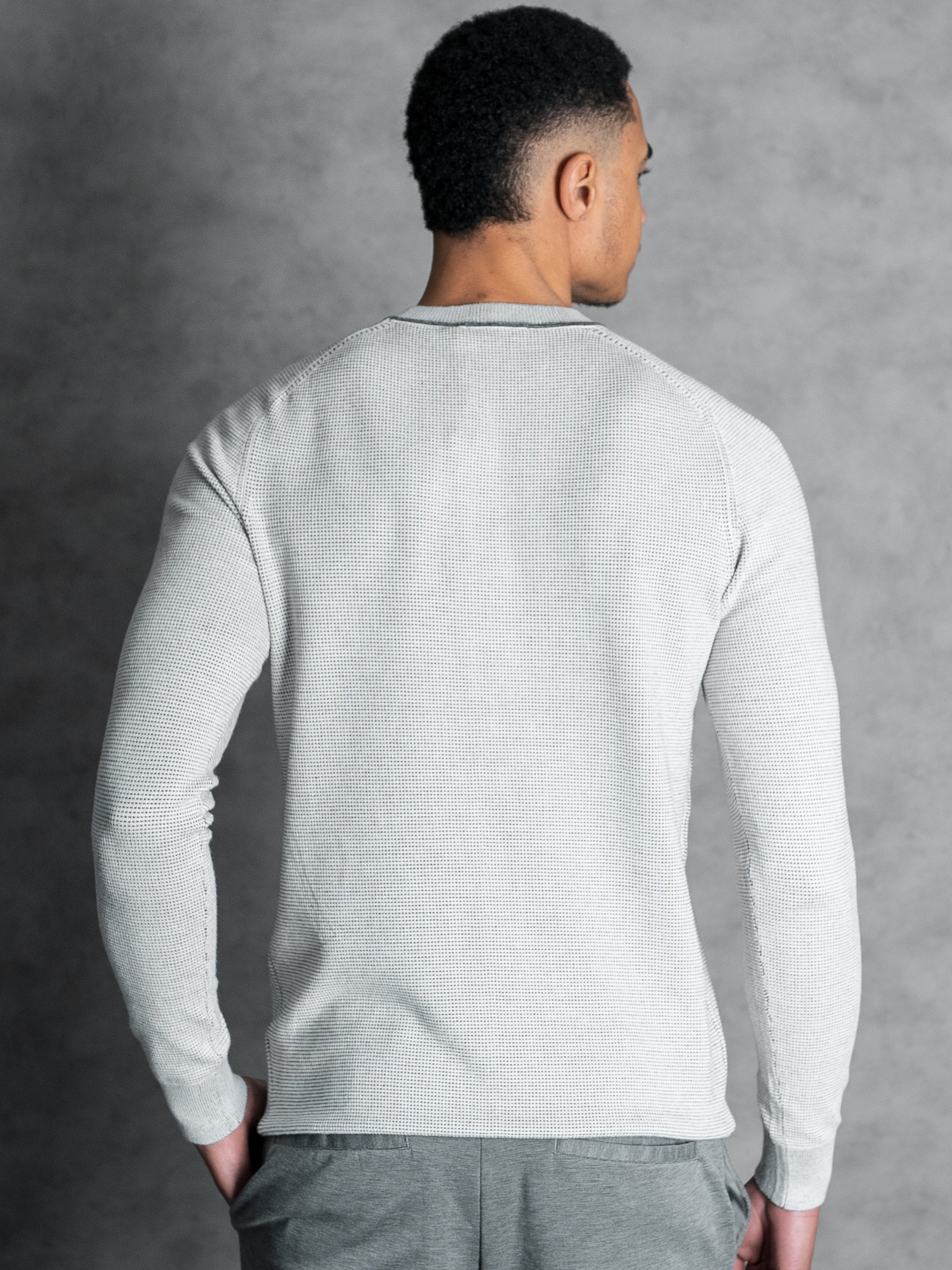 The Skipsby is a modern take on the classic crewneck, featuring a sophisticated two-tone micro-knit pattern. This bird's-eye weave creates a high-end, textured appearance that reveals its intricate detail up close. It is finished with a refined contrast tipping on the neckline and cuffs for a sharp, sporty edge.
